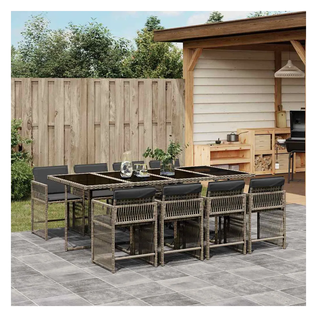 Cet ensemble de salle à manger de jardin est un excellent choix pour les repas en plein air ou pour vous détendre dans le jardin, l'arrière-cour ou le patio. Matériau durable : la résine tressée, également connue sous le nom de poly rotin, est un matériau synthétique solide et nécessitant peu d'entretien qui ressemble au rotin naturel. Il est léger, facile à nettoyer et couramment utilisé pour les meubles d'extérieur en raison de sa durabilité et de ses propriétés de résistance aux intempéries.Rangement compact : ces chaises sont dotées d'un dossier rabattable, ce qui permet de les ranger facilement sous la table. Une fois pliées, elles se rangent parfaitement sous la table, formant un cube peu encombrant.Expérience d'assise confortable : ce mobilier d'extérieur, doté de coussins épais, offre une expérience d'assise confortable.Housse amovible et lavable : ces coussins de siège sont dotés de housses amovibles pour un lavage et un entretien faciles. Les housses de coussin ont un rabat à l'arrière pour une fixation facile aux dossiers.Dessus en verre : le dessus de la table d'extérieur est fabriqué en verre trempé solide et durable, ce qui le rend facile à nettoyer avec un chiffon humide et ajoute une touche d'élégance à votre espace extérieur. Bon à savoir :Pour que vos meubles d'extérieur restent beaux, nous vous recommandons de les protéger avec une housse imperméable.