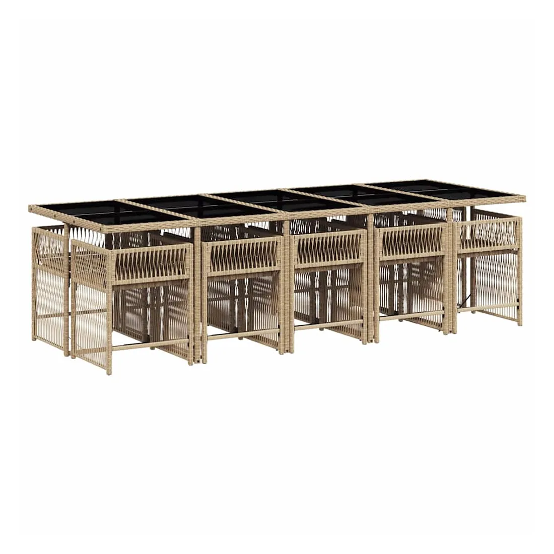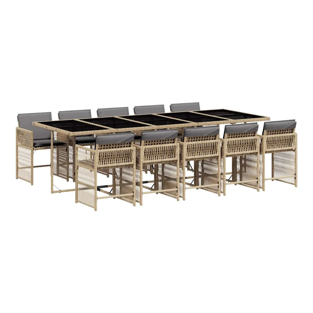 Ensemble à manger de jardin et coussins 11 pcs mélange beige