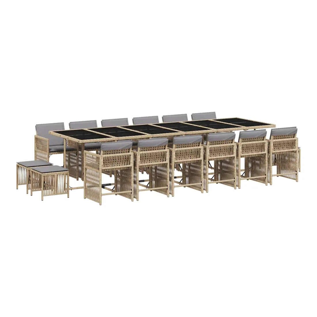 Ensemble à manger de jardin et coussins 17 pcs mélange beige