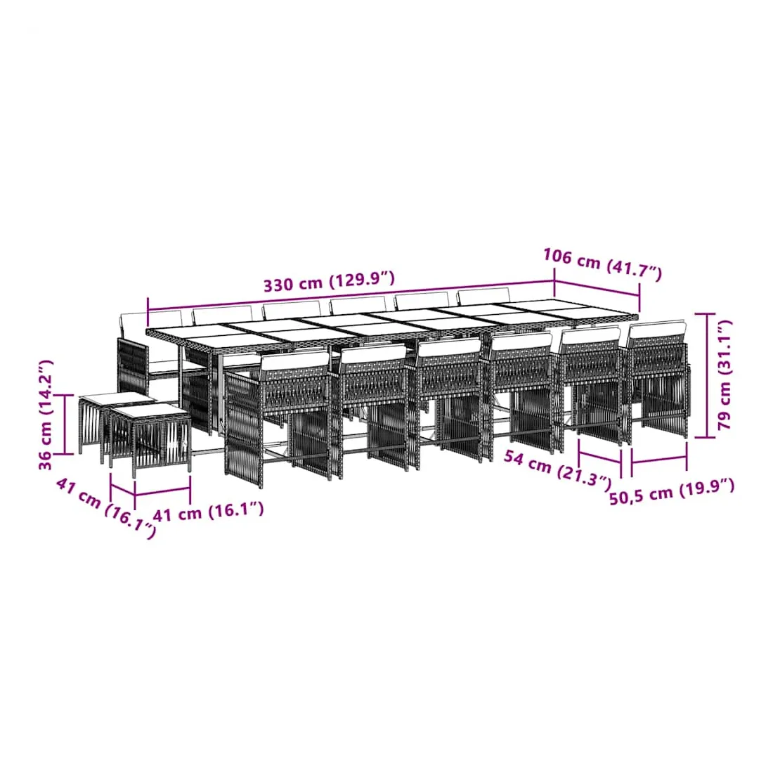 - Dimensions : 330 x 106 x 73 cm (L x l x H)