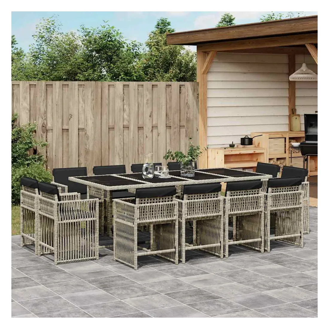 Cet ensemble de salle à manger de jardin est un excellent choix pour les repas en plein air ou pour vous détendre dans le jardin, l'arrière-cour ou le patio. Matériau durable : la résine tressée, également connue sous le nom de poly rotin, est un matériau synthétique solide et nécessitant peu d'entretien qui ressemble au rotin naturel. Il est léger, facile à nettoyer et couramment utilisé pour les meubles d'extérieur en raison de sa durabilité et de ses propriétés de résistance aux intempéries.Rangement compact : ces chaises sont dotées d'un dossier rabattable, ce qui permet de les ranger facilement sous la table. Une fois pliées, elles se rangent parfaitement sous la table, formant un cube peu encombrant.Expérience d'assise confortable : ce mobilier d'extérieur, doté de coussins épais, offre une expérience d'assise confortable.Housse amovible et lavable : ces coussins de siège sont dotés de housses amovibles pour un lavage et un entretien faciles. Les housses de coussin ont un rabat à l'arrière pour une fixation facile aux dossiers.Dessus en verre : le dessus de la table d'extérieur est fabriqué en verre trempé solide et durable, ce qui le rend facile à nettoyer avec un chiffon humide et ajoute une touche d'élégance à votre espace extérieur. Bon à savoir :Pour que vos meubles d'extérieur restent beaux, nous vous recommandons de les protéger avec une housse imperméable.