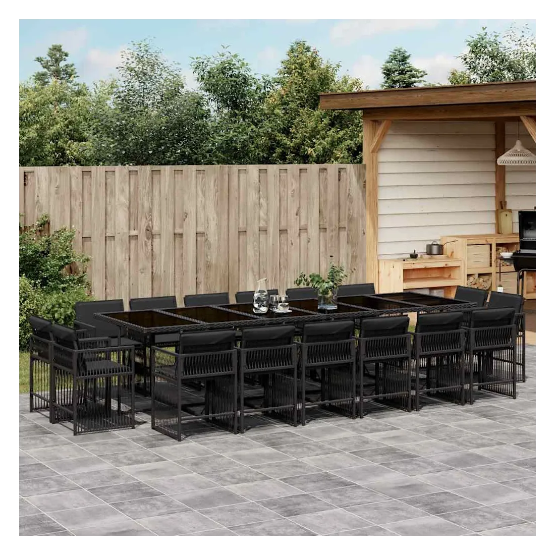 Cet ensemble de salle à manger de jardin est un excellent choix pour les repas en plein air ou pour vous détendre dans le jardin, l'arrière-cour ou le patio. Matériau durable : la résine tressée, également connue sous le nom de poly rotin, est un matériau synthétique solide et nécessitant peu d'entretien qui ressemble au rotin naturel. Il est léger, facile à nettoyer et couramment utilisé pour les meubles d'extérieur en raison de sa durabilité et de ses propriétés de résistance aux intempéries.Rangement compact : ces chaises sont dotées d'un dossier rabattable, ce qui permet de les ranger facilement sous la table. Une fois pliées, elles se rangent parfaitement sous la table, formant un cube peu encombrant.Expérience d'assise confortable : ce mobilier d'extérieur, doté de coussins épais, offre une expérience d'assise confortable.Housse amovible et lavable : ces coussins de siège sont dotés de housses amovibles pour un lavage et un entretien faciles. Les housses de coussin ont un rabat à l'arrière pour une fixation facile aux dossiers.Dessus en verre : le dessus de la table d'extérieur est fabriqué en verre trempé solide et durable, ce qui le rend facile à nettoyer avec un chiffon humide et ajoute une touche d'élégance à votre espace extérieur. Bon à savoir :Pour que vos meubles d'extérieur restent beaux, nous vous recommandons de les protéger avec une housse imperméable.