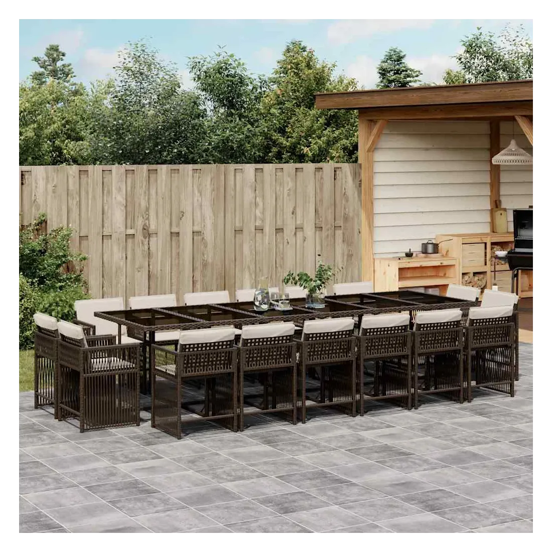 Cet ensemble de salle à manger de jardin est un excellent choix pour les repas en plein air ou pour vous détendre dans le jardin, l'arrière-cour ou le patio. Matériau durable : la résine tressée, également connue sous le nom de poly rotin, est un matériau synthétique solide et nécessitant peu d'entretien qui ressemble au rotin naturel. Il est léger, facile à nettoyer et couramment utilisé pour les meubles d'extérieur en raison de sa durabilité et de ses propriétés de résistance aux intempéries.Rangement compact : ces chaises sont dotées d'un dossier rabattable, ce qui permet de les ranger facilement sous la table. Une fois pliées, elles se rangent parfaitement sous la table, formant un cube peu encombrant.Expérience d'assise confortable : ce mobilier d'extérieur, doté de coussins épais, offre une expérience d'assise confortable.Housse amovible et lavable : ces coussins de siège sont dotés de housses amovibles pour un lavage et un entretien faciles. Les housses de coussin ont un rabat à l'arrière pour une fixation facile aux dossiers.Dessus en verre : le dessus de la table d'extérieur est fabriqué en verre trempé solide et durable, ce qui le rend facile à nettoyer avec un chiffon humide et ajoute une touche d'élégance à votre espace extérieur. Bon à savoir :Pour que vos meubles d'extérieur restent beaux, nous vous recommandons de les protéger avec une housse imperméable.