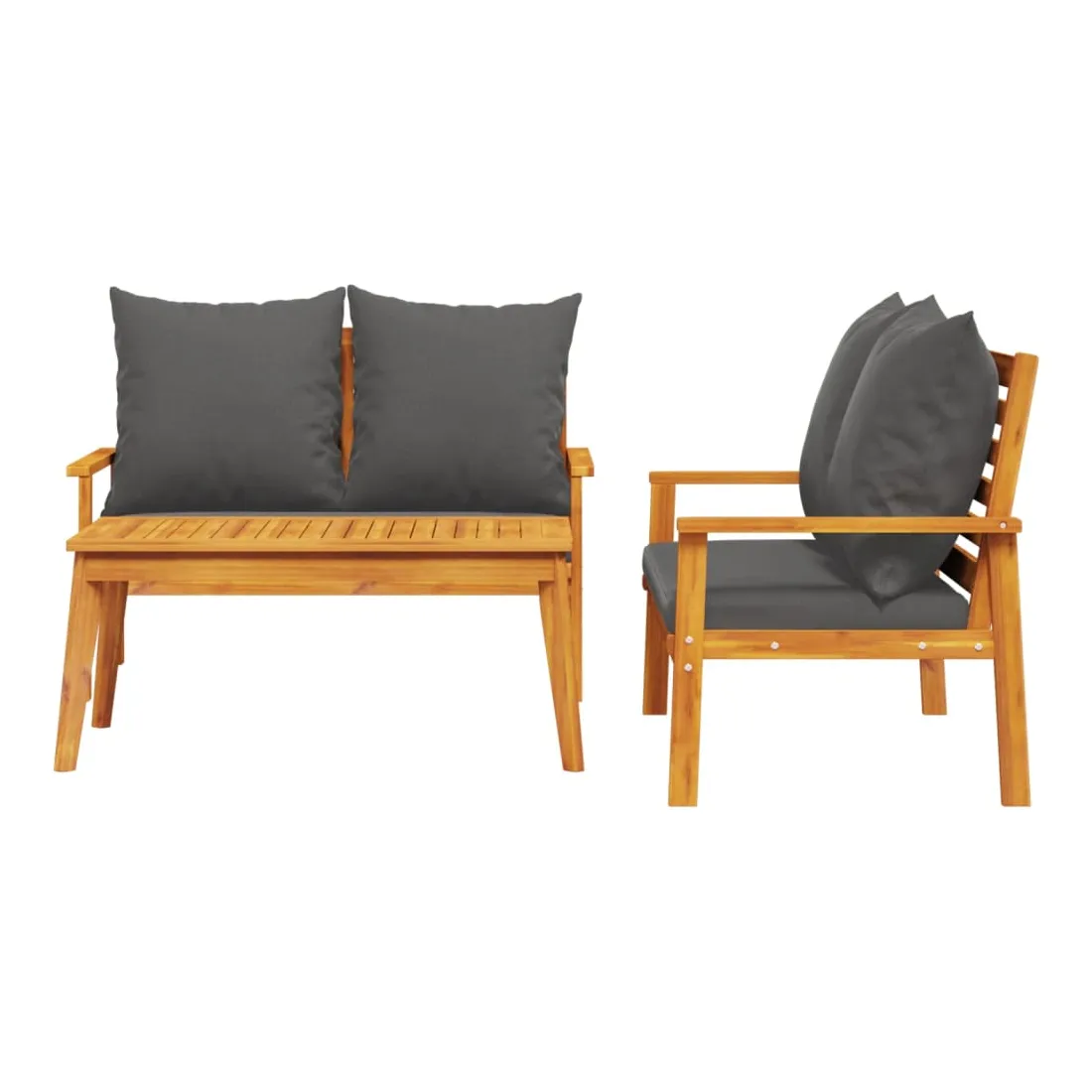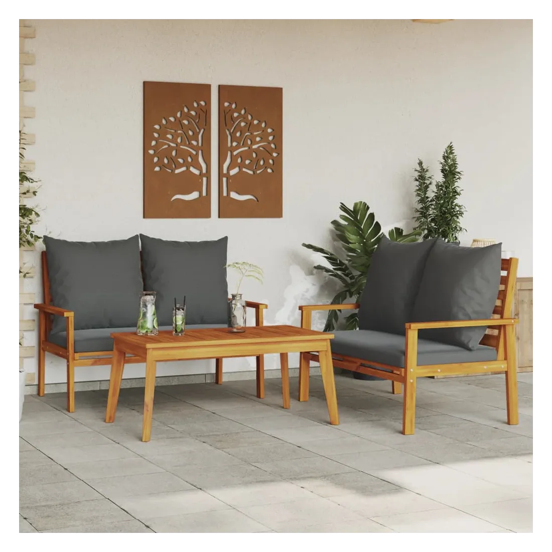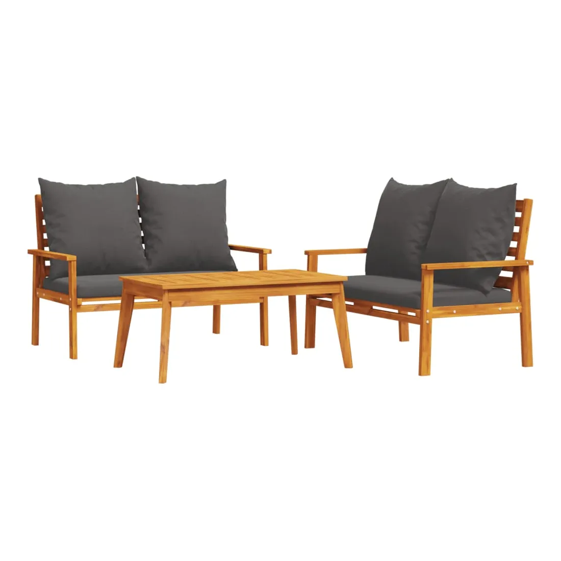 Cet ensemble de salon de jardin en bois a un design élégant et constitue un excellent choix pour vous détendre et profiter du jardin ou du patio. Bois d'acacia massif : l'ensemble de salon d'extérieur est fabriqué en bois d'acacia massif pour plus de robustesse et de stabilité. Le bois d'acacia solide est un beau matériau naturel. Le bois d'acacia a de beaux grains de bois qui rendent chaque meuble unique et légèrement différent les uns des autres.Expérience d'assise confortable : doté d'accoudoirs et d'un dossier, l'ensemble de salon de terrasse vous offre le plus grand confort. De plus, les coussins bien rembourrés offrent du confort pendant votre temps d'assise.Dessus stable et facile à nettoyer : cette table de jardin a un dessus en bois d'acacia robuste, durable et facile à nettoyer avec un chiffon humide.Nombreuses applications : le siège de jardin est parfait pour tout porche avant, patio, arrière-cour, pelouse, jardin, etc. Bon à savoir :Pour que vos meubles d'extérieur restent beaux, nous vous recommandons de les protéger avec une housse imperméable.