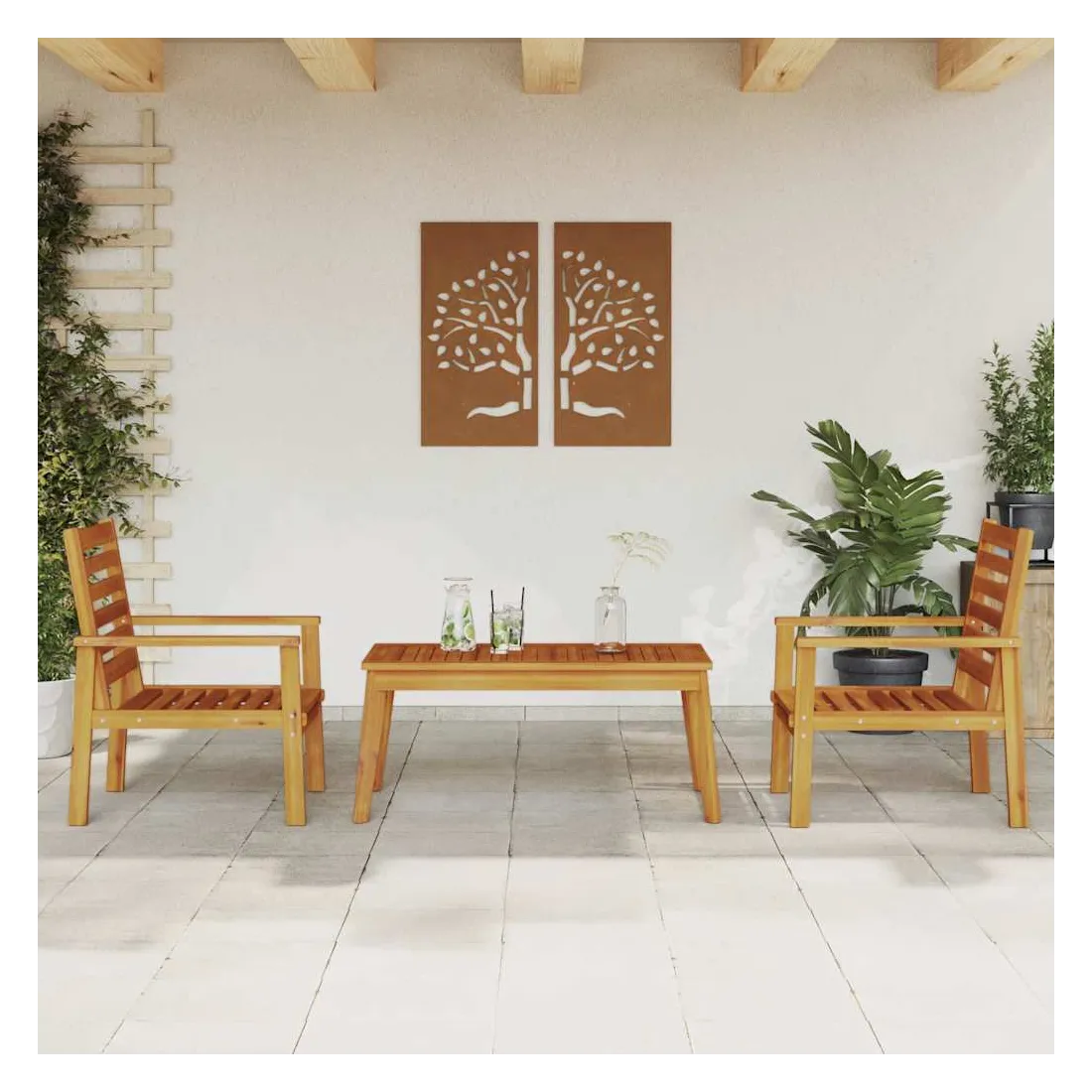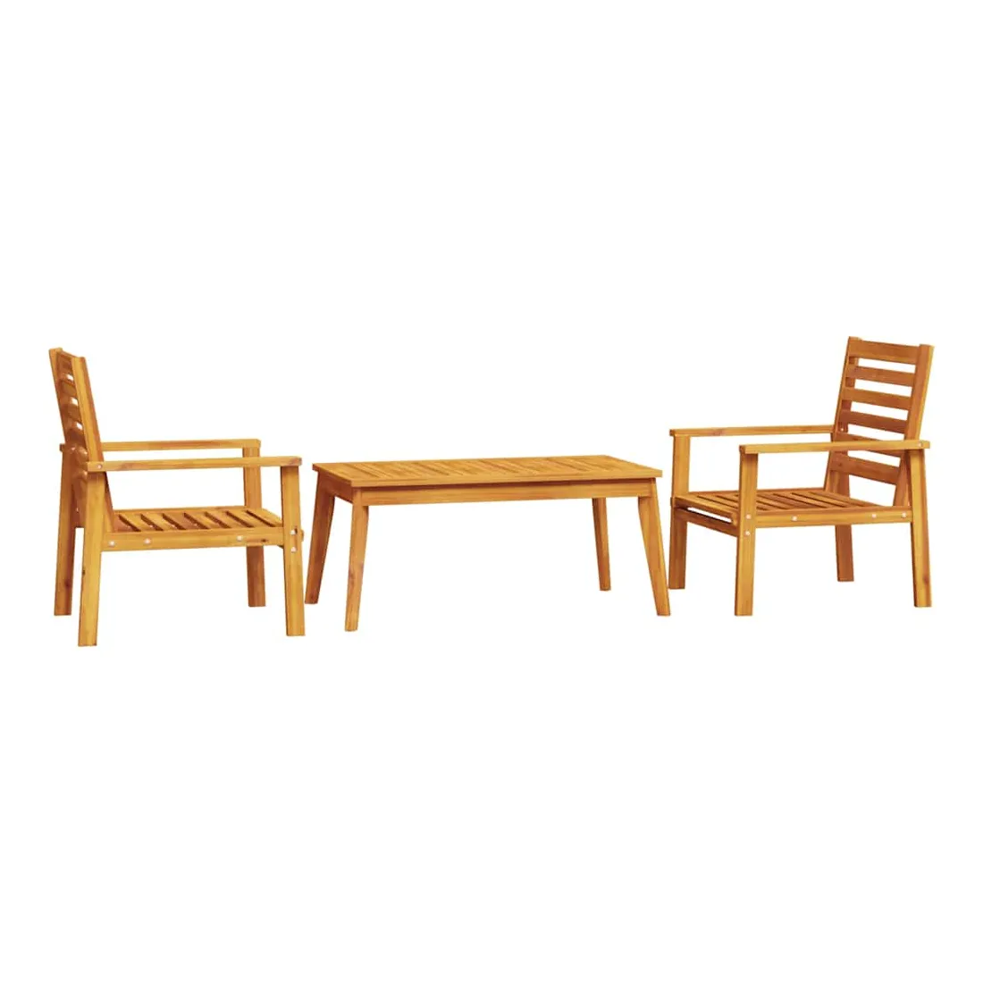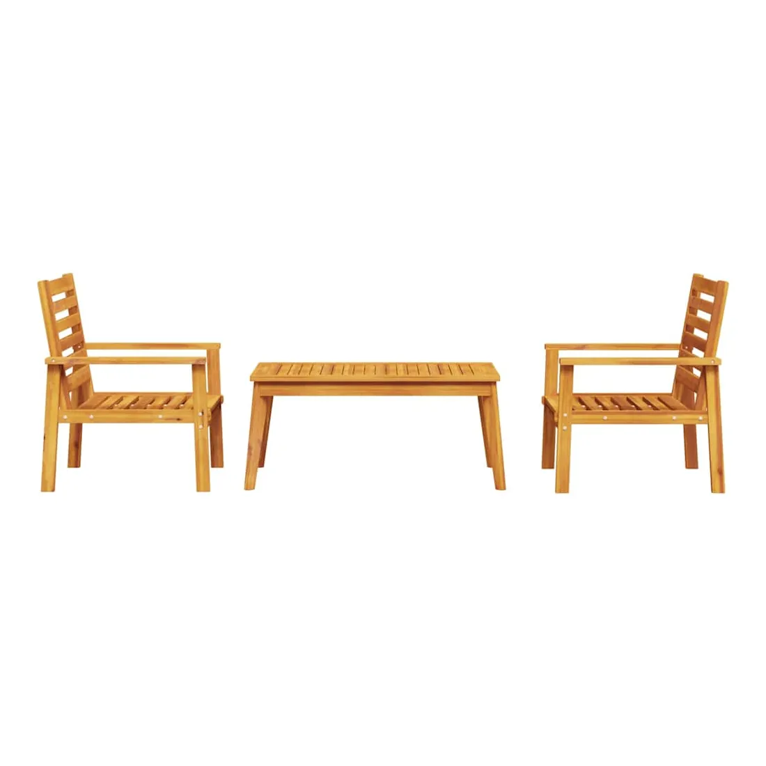 Cet ensemble de salon de jardin en bois a un design élégant et constitue un excellent choix pour vous détendre et profiter du jardin ou du patio. Bois d'acacia massif : l'ensemble de salon d'extérieur est fabriqué en bois d'acacia massif pour plus de robustesse et de stabilité. Le bois d'acacia solide est un beau matériau naturel. Le bois d'acacia a de beaux grains de bois qui rendent chaque meuble unique et légèrement différent les uns des autres.Expérience d'assise confortable : doté d'accoudoirs et d'un dossier, le salon de jardin vous offre un confort optimal.Dessus stable et facile à nettoyer : cette table de jardin a un dessus en bois d'acacia robuste, durable et facile à nettoyer avec un chiffon humide.Nombreuses applications : le siège de jardin est parfait pour tout porche avant, patio, arrière-cour, pelouse, jardin, etc. Bon à savoir :Pour que vos meubles d'extérieur restent beaux, nous vous recommandons de les protéger avec une housse imperméable.