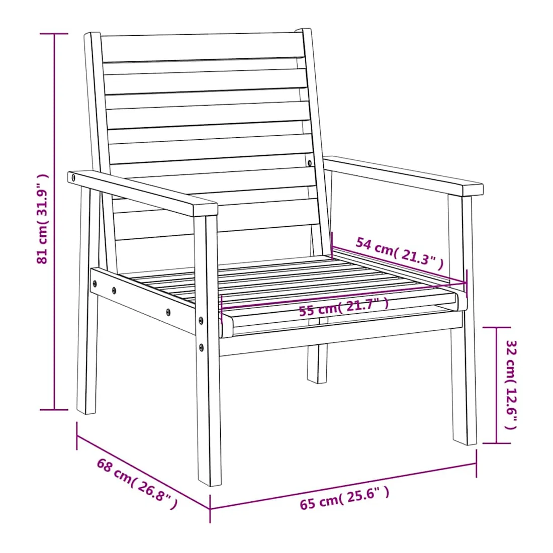 - Hauteur du siège à partir du sol : 32 cm