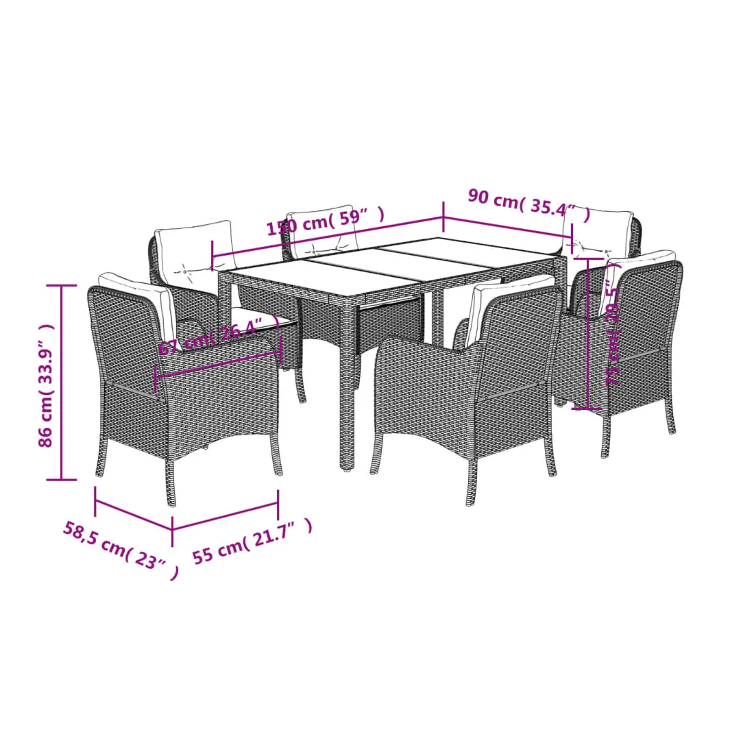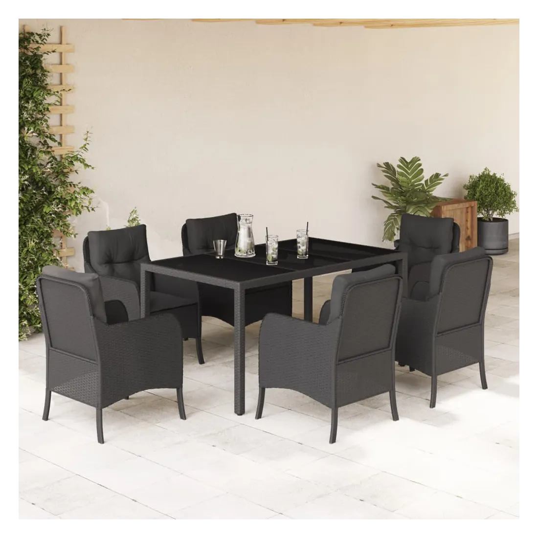 vidaXLCet ensemble de salle à manger de jardin est un excellent choix pour les repas en plein air ou pour vous détendre dans le jardin, l'arrière-cour ou le patio. Matériau durable : la résine tressée, également connue sous le nom de poly rotin, est un matériau synthétique solide et nécessitant peu d'entretien qui ressemble au rotin naturel. Il est léger, facile à nettoyer et couramment utilisé pour les meubles d'extérieur en raison de sa durabilité et de ses propriétés de résistance aux intempéries.Expérience d'assise confortable : ce mobilier d'extérieur, doté de coussins épais, offre une expérience d'assise confortable.Housse amovible et lavable : ces coussins de siège sont dotés de housses amovibles pour un lavage et un entretien faciles. Les housses de coussin de chaise ont un rabat à l'arrière pour une fixation facile aux chaises.Dessus en verre : le dessus de la table d'extérieur est fabriqué en verre trempé solide et durable, ce qui le rend facile à nettoyer avec un chiffon humide et ajoute une touche d'élégance à votre espace extérieur.Cadre robuste et stable : le cadre en acier enduit de poudre assure la solidité et la stabilité du meuble de jardin pour une utilisation quotidienne à l'extérieur. Bon à savoir :Pour que vos meubles d'extérieur restent beaux, nous vous recommandons de les protéger avec une housse imperméable.