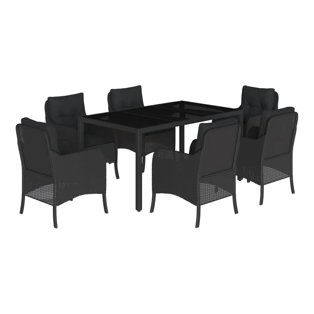 Ensemble à manger de jardin coussins 7pcs Noir Résine tressée