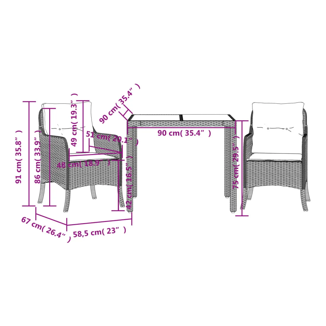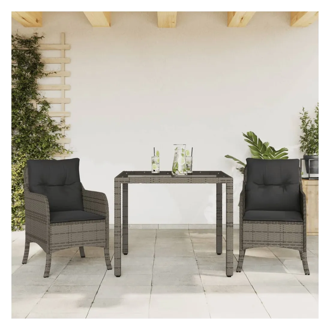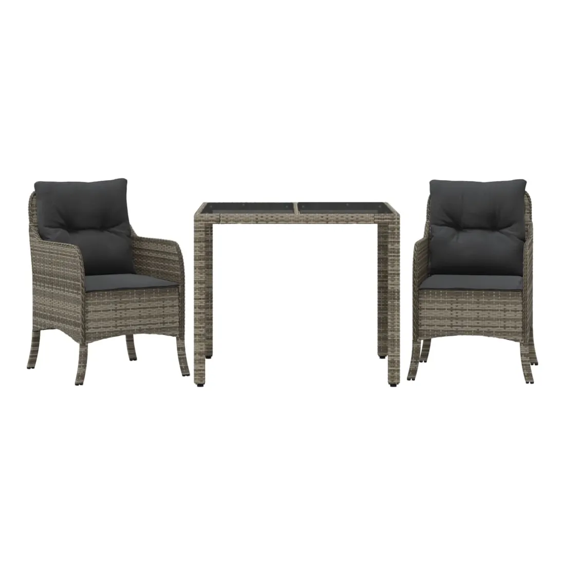 Ensemble à manger de jardin 3 pcs coussins gris résine tressée