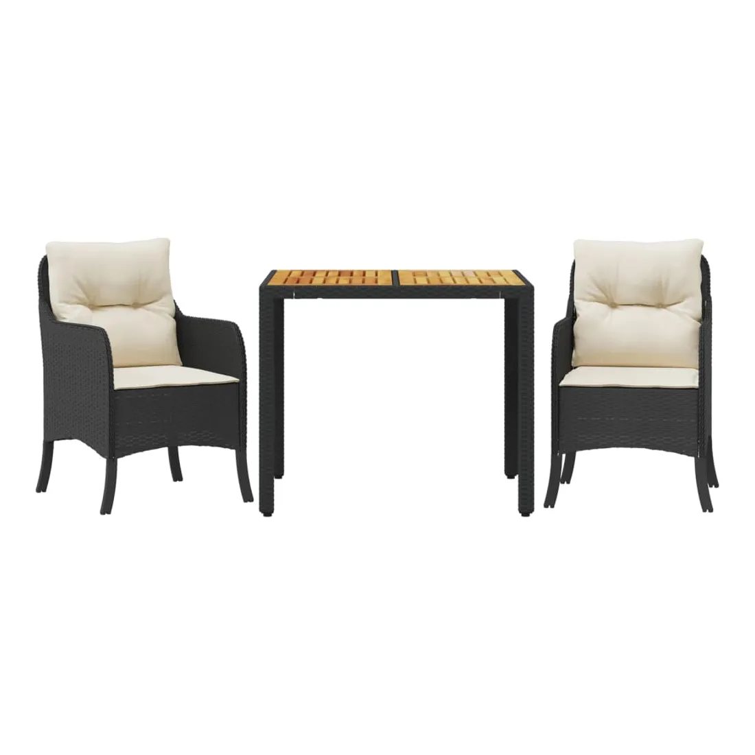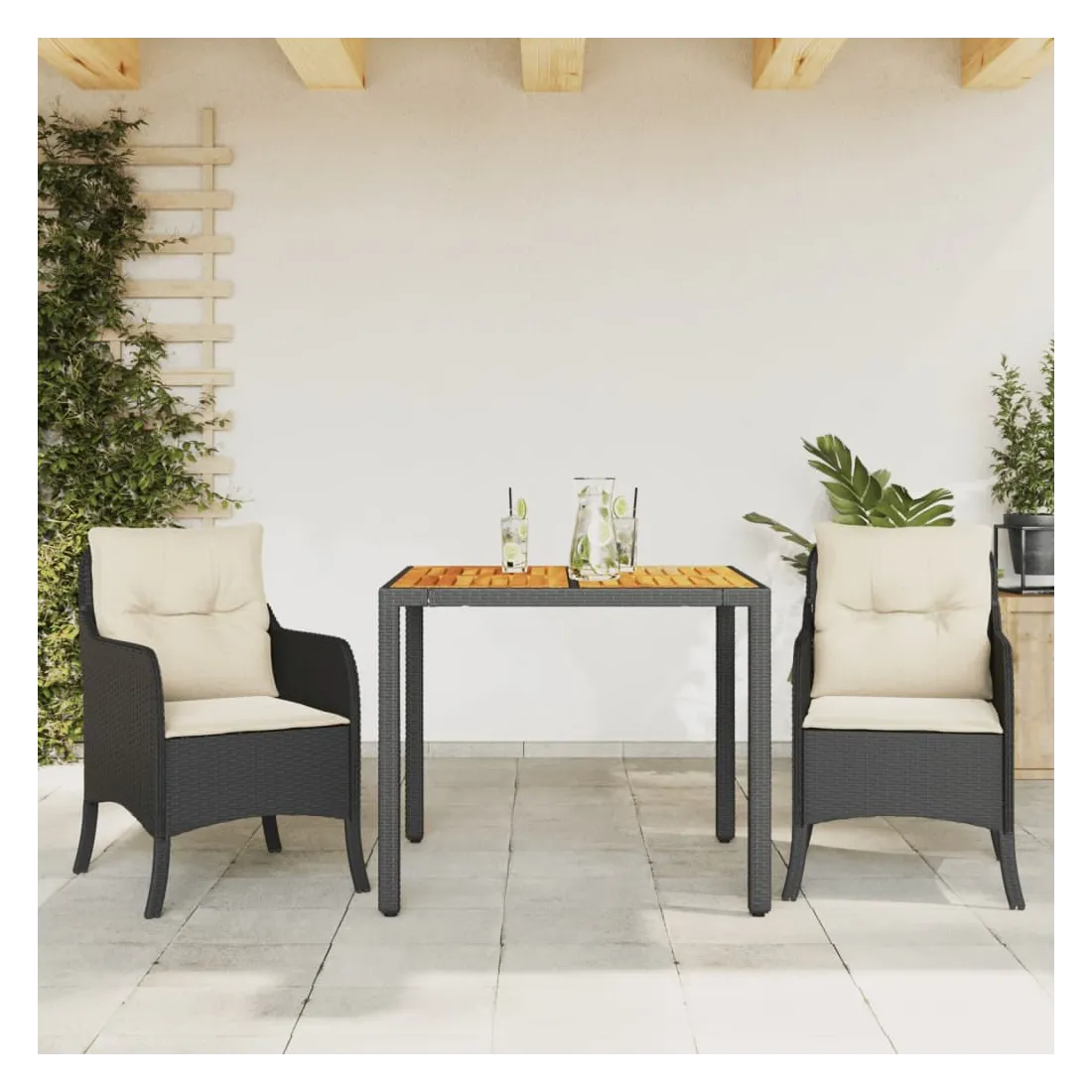 Cet ensemble de salle à manger de jardin est un excellent choix pour les repas en plein air ou pour vous détendre dans le jardin, l'arrière-cour ou le patio. Matériau durable : la résine tressée, également connue sous le nom de poly rotin, est un matériau synthétique solide et nécessitant peu d'entretien qui ressemble au rotin naturel. Il est léger, facile à nettoyer et couramment utilisé pour les meubles d'extérieur en raison de sa durabilité et de ses propriétés de résistance aux intempéries.Expérience d'assise confortable : ce mobilier d'extérieur, doté de coussins épais, offre une expérience d'assise confortable.Housse amovible et lavable : ces coussins de siège sont dotés de housses amovibles pour un lavage et un entretien faciles. Les housses de coussin de chaise ont un rabat à l'arrière pour une fixation facile aux chaises.Dessus stable et facile à nettoyer : cette table de jardin a un dessus en bois d'acacia robuste, durable et facile à nettoyer avec un chiffon humide.Cadre robuste et stable : le cadre en acier enduit de poudre assure la solidité et la stabilité du meuble de jardin pour une utilisation quotidienne à l'extérieur. Bon à savoir :Pour que vos meubles d'extérieur restent beaux, nous vous recommandons de les protéger avec une housse imperméable.
