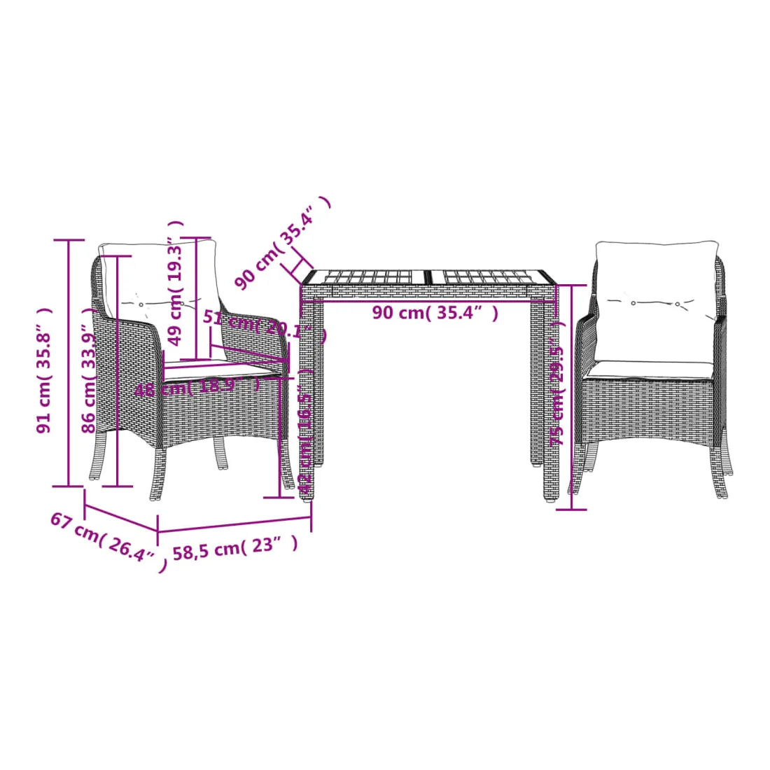 - Dimensions : 90 x 90 x 75 cm (L x l x H)