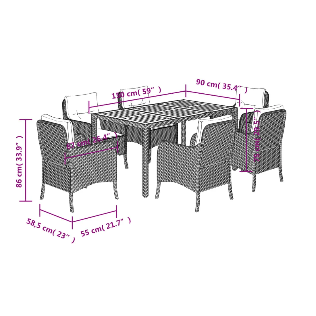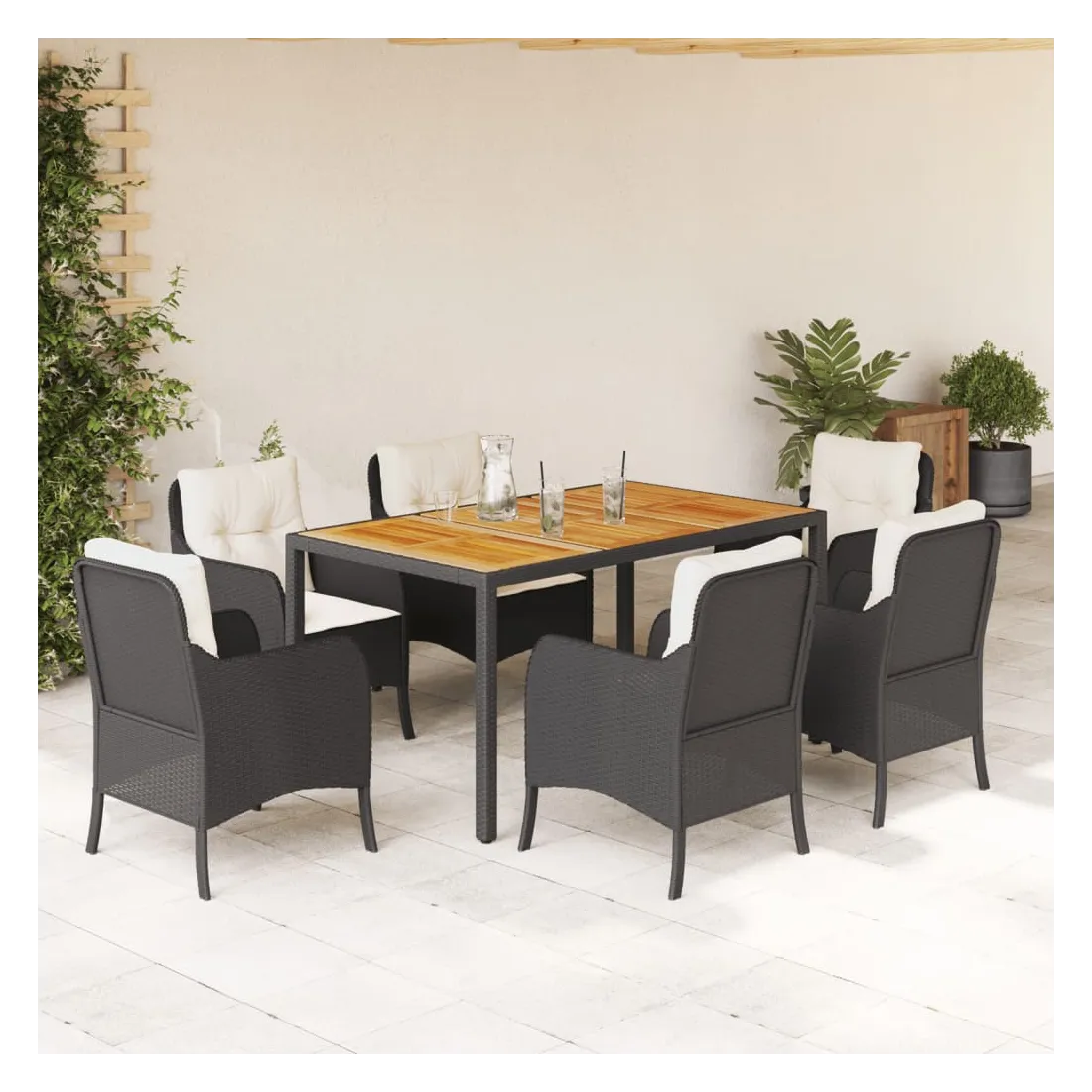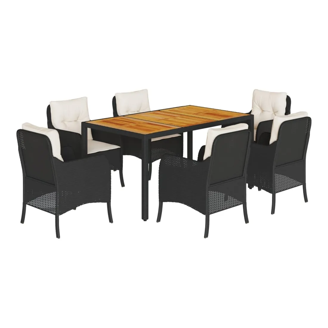 Ensemble à manger de jardin coussins 7pcs Noir Résine tressée