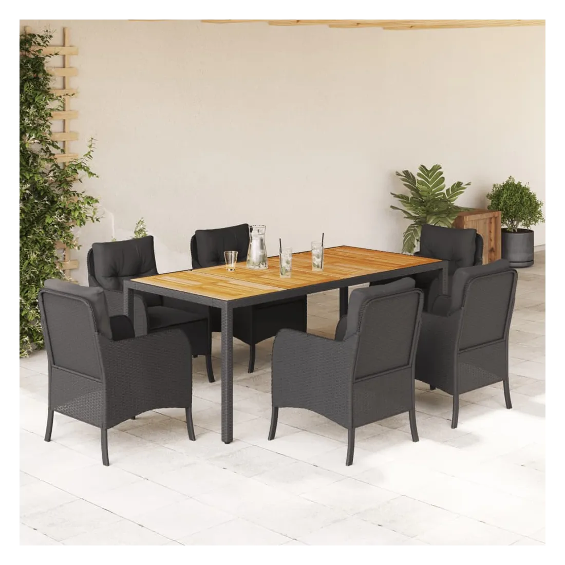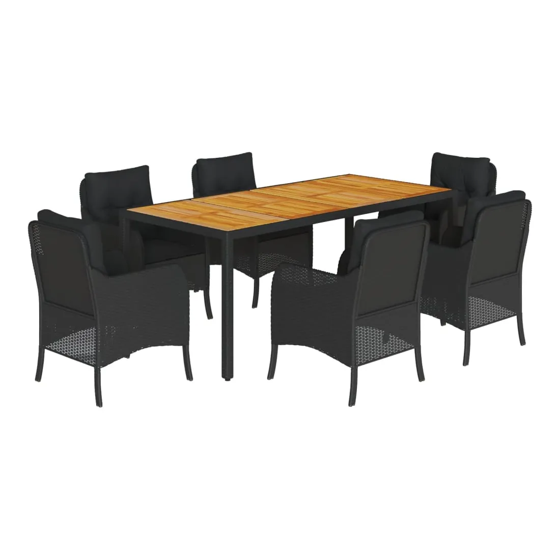 vidaXLCet ensemble de salle à manger de jardin est un excellent choix pour les repas en plein air ou pour vous détendre dans le jardin, l'arrière-cour ou le patio. Matériau durable : la résine tressée, également connue sous le nom de poly rotin, est un matériau synthétique solide et nécessitant peu d'entretien qui ressemble au rotin naturel. Il est léger, facile à nettoyer et couramment utilisé pour les meubles d'extérieur en raison de sa durabilité et de ses propriétés de résistance aux intempéries.Expérience d'assise confortable : ce mobilier d'extérieur, doté de coussins épais, offre une expérience d'assise confortable.Housse amovible et lavable : ces coussins de siège sont dotés de housses amovibles pour un lavage et un entretien faciles. Les housses de coussin de chaise ont un rabat à l'arrière pour une fixation facile aux chaises.Dessus stable et facile à nettoyer : cette table de jardin a un dessus en bois d'acacia robuste, durable et facile à nettoyer avec un chiffon humide.Cadre robuste et stable : le cadre en acier enduit de poudre assure la solidité et la stabilité du meuble de jardin pour une utilisation quotidienne à l'extérieur. Bon à savoir :Pour que vos meubles d'extérieur restent beaux, nous vous recommandons de les protéger avec une housse imperméable.
