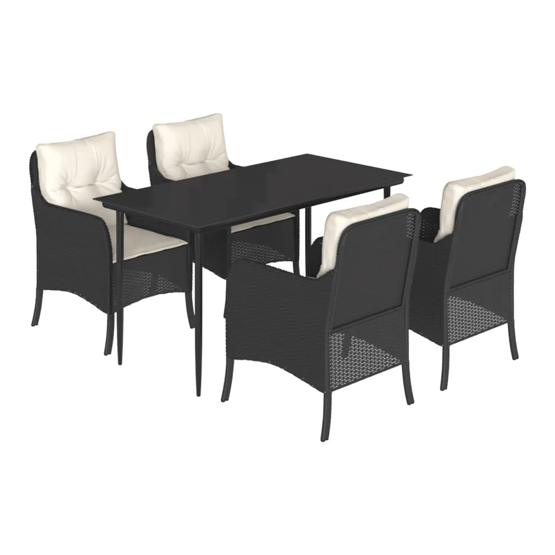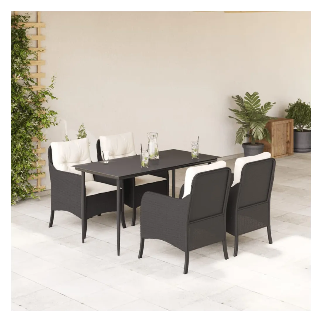Ensemble à manger de jardin coussins 5pcs Noir Résine tressée
