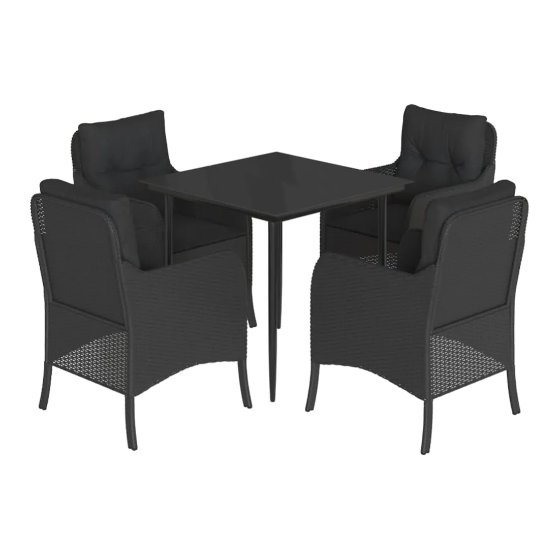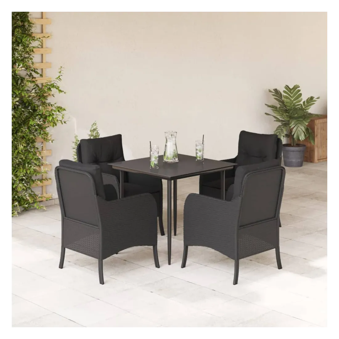 Cet ensemble de salle à manger de jardin est un excellent choix pour les repas en plein air ou pour vous détendre dans le jardin, l'arrière-cour ou le patio. Matériau durable : la résine tressée, également connue sous le nom de poly rotin, est un matériau synthétique solide et nécessitant peu d'entretien qui ressemble au rotin naturel. Il est léger, facile à nettoyer et couramment utilisé pour les meubles d'extérieur en raison de sa durabilité et de ses propriétés de résistance aux intempéries.Expérience d'assise confortable : ce mobilier d'extérieur, doté de coussins épais, offre une expérience d'assise confortable.Housse amovible et lavable : ces coussins de siège sont dotés de housses amovibles pour un lavage et un entretien faciles.Dessus en verre : le dessus de la table d'extérieur est fabriqué en verre trempé solide et durable, ce qui le rend facile à nettoyer avec un chiffon humide et ajoute une touche d'élégance à votre espace extérieur.Cadre robuste et stable : le cadre en acier enduit de poudre assure la solidité et la stabilité du meuble de jardin pour une utilisation quotidienne à l'extérieur. Bon à savoir :Pour que vos meubles d'extérieur restent beaux, nous vous recommandons de les protéger avec une housse imperméable.