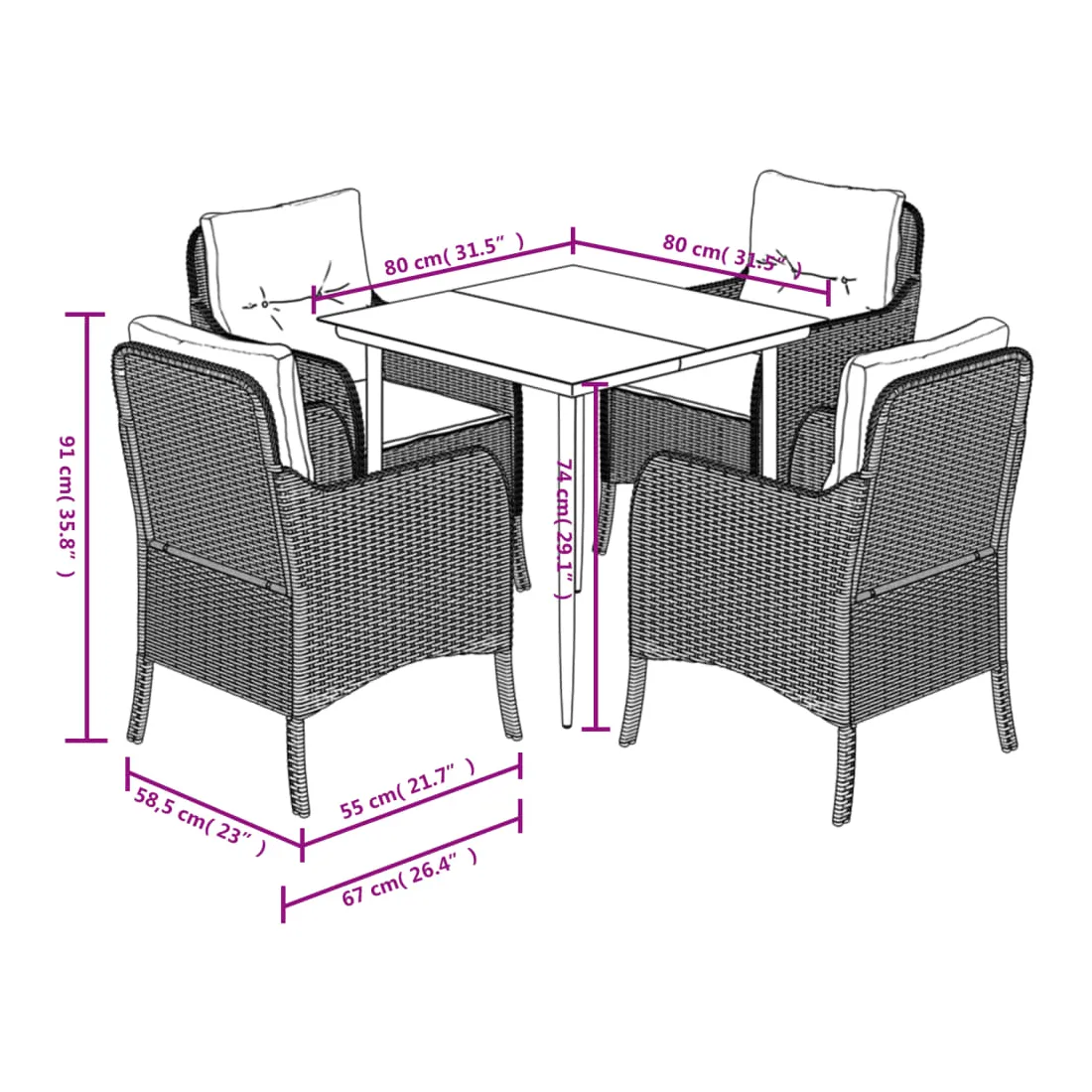 - Dimensions : 80 x 80 x 74 cm (L x l x H)
