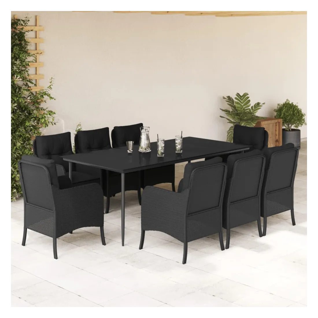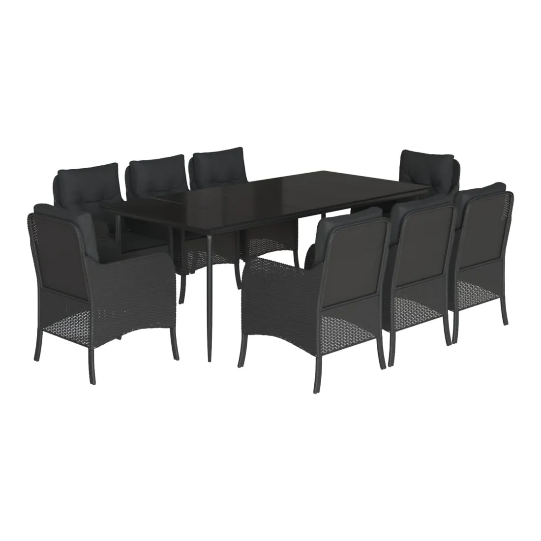 Ensemble à manger de jardin 9pcs coussins noir résine tressée