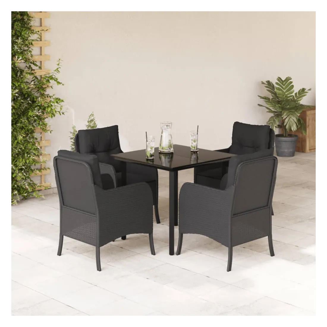 Cet ensemble de salle à manger de jardin est un excellent choix pour les repas en plein air ou pour vous détendre dans le jardin, l'arrière-cour ou le patio. Matériau durable : la résine tressée, également connue sous le nom de poly rotin, est un matériau synthétique solide et nécessitant peu d'entretien qui ressemble au rotin naturel. Il est léger, facile à nettoyer et couramment utilisé pour les meubles d'extérieur en raison de sa durabilité et de ses propriétés de résistance aux intempéries.Expérience d'assise confortable : ce mobilier d'extérieur, doté de coussins épais, offre une expérience d'assise confortable.Housse amovible et lavable : ces coussins de siège sont dotés de housses amovibles pour un lavage et un entretien faciles.Dessus en verre : le dessus de la table d'extérieur est fabriqué en verre trempé solide et durable, ce qui le rend facile à nettoyer avec un chiffon humide et ajoute une touche d'élégance à votre espace extérieur.Cadre robuste et stable : le cadre en acier enduit de poudre assure la solidité et la stabilité du meuble de jardin pour une utilisation quotidienne à l'extérieur. Bon à savoir :Pour que vos meubles d'extérieur restent beaux, nous vous recommandons de les protéger avec une housse imperméable.