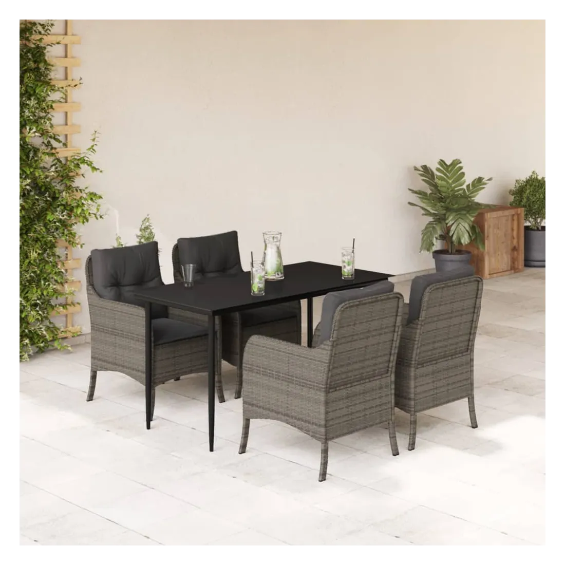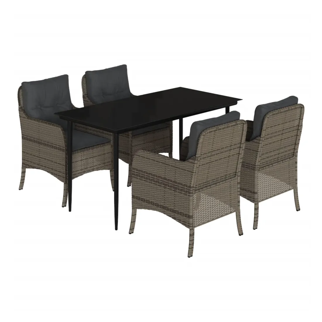Cet ensemble de salle à manger de jardin est un excellent choix pour les repas en plein air ou pour vous détendre dans le jardin, l'arrière-cour ou le patio. Matériau durable : la résine tressée, également connue sous le nom de poly rotin, est un matériau synthétique solide et nécessitant peu d'entretien qui ressemble au rotin naturel. Il est léger, facile à nettoyer et couramment utilisé pour les meubles d'extérieur en raison de sa durabilité et de ses propriétés de résistance aux intempéries.Expérience d'assise confortable : ce mobilier d'extérieur, doté de coussins épais, offre une expérience d'assise confortable.Housse amovible et lavable : ces coussins de siège sont dotés de housses amovibles pour un lavage et un entretien faciles.Dessus en verre : le dessus de la table d'extérieur est fabriqué en verre trempé solide et durable, ce qui le rend facile à nettoyer avec un chiffon humide et ajoute une touche d'élégance à votre espace extérieur.Cadre robuste et stable : le cadre en acier enduit de poudre assure la solidité et la stabilité du meuble de jardin pour une utilisation quotidienne à l'extérieur. Bon à savoir :Pour que vos meubles d'extérieur restent beaux, nous vous recommandons de les protéger avec une housse imperméable.
