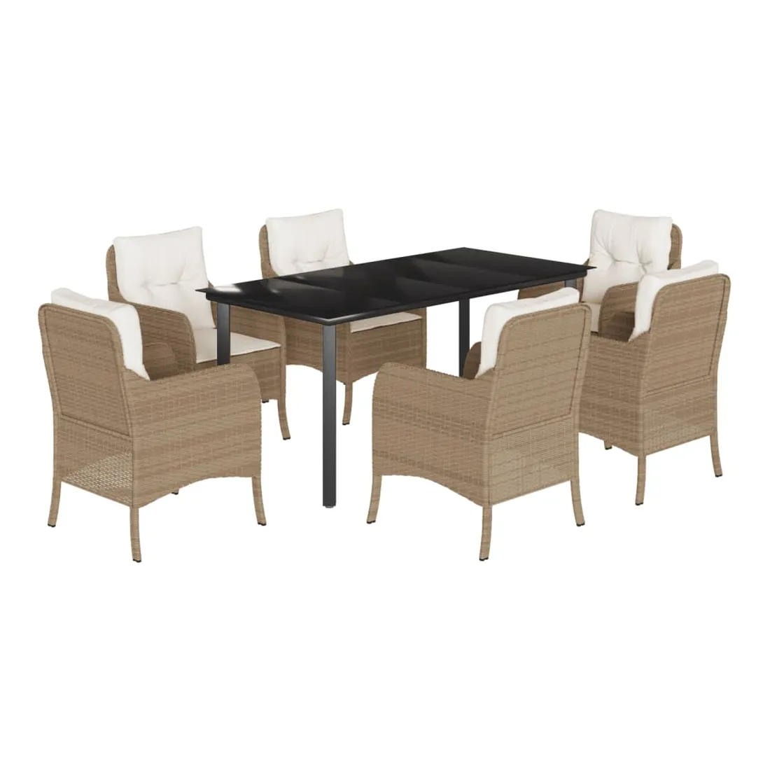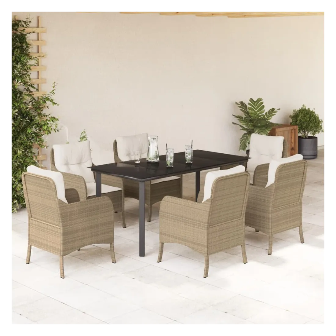 Cet ensemble de salle à manger de jardin est un excellent choix pour les repas en plein air ou pour vous détendre dans le jardin, l'arrière-cour ou le patio. Matériau durable : la résine tressée, également connue sous le nom de poly rotin, est un matériau synthétique solide et nécessitant peu d'entretien qui ressemble au rotin naturel. Il est léger, facile à nettoyer et couramment utilisé pour les meubles d'extérieur en raison de sa durabilité et de ses propriétés de résistance aux intempéries.Expérience d'assise confortable : ce mobilier d'extérieur, doté de coussins épais, offre une expérience d'assise confortable.Housse amovible et lavable : ces coussins de siège sont dotés de housses amovibles pour un lavage et un entretien faciles.Dessus en verre : le dessus de la table d'extérieur est fabriqué en verre trempé solide et durable, ce qui le rend facile à nettoyer avec un chiffon humide et ajoute une touche d'élégance à votre espace extérieur.Cadre robuste et stable : le cadre en acier enduit de poudre assure la solidité et la stabilité du meuble de jardin pour une utilisation quotidienne à l'extérieur. Bon à savoir :Pour que vos meubles d'extérieur restent beaux, nous vous recommandons de les protéger avec une housse imperméable.