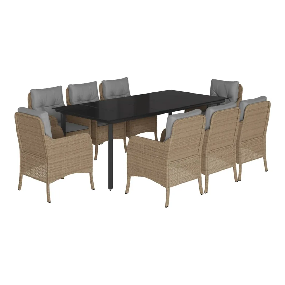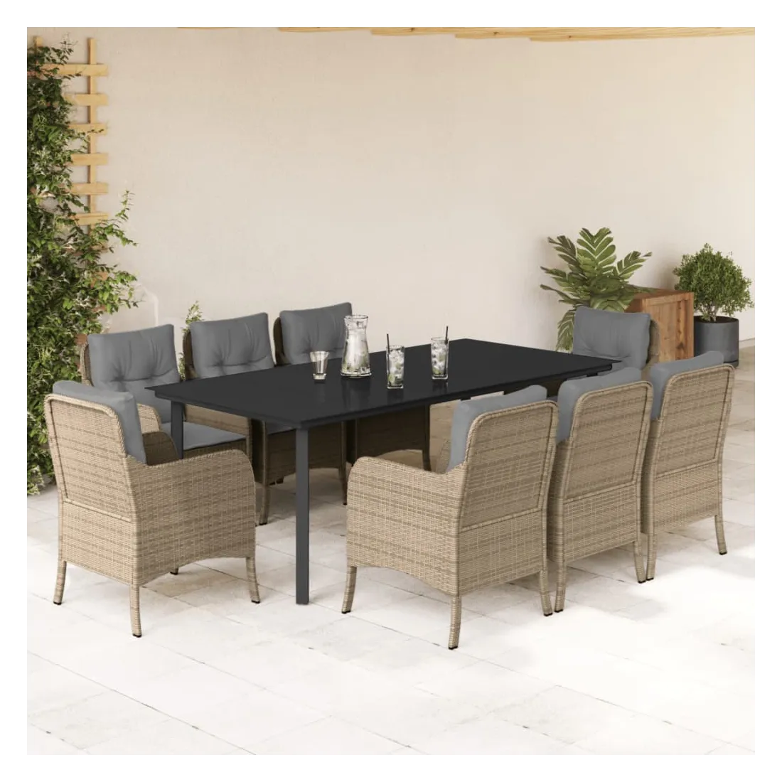 Ensemble à manger de jardin et coussins 9 pcs beige Poly rotin