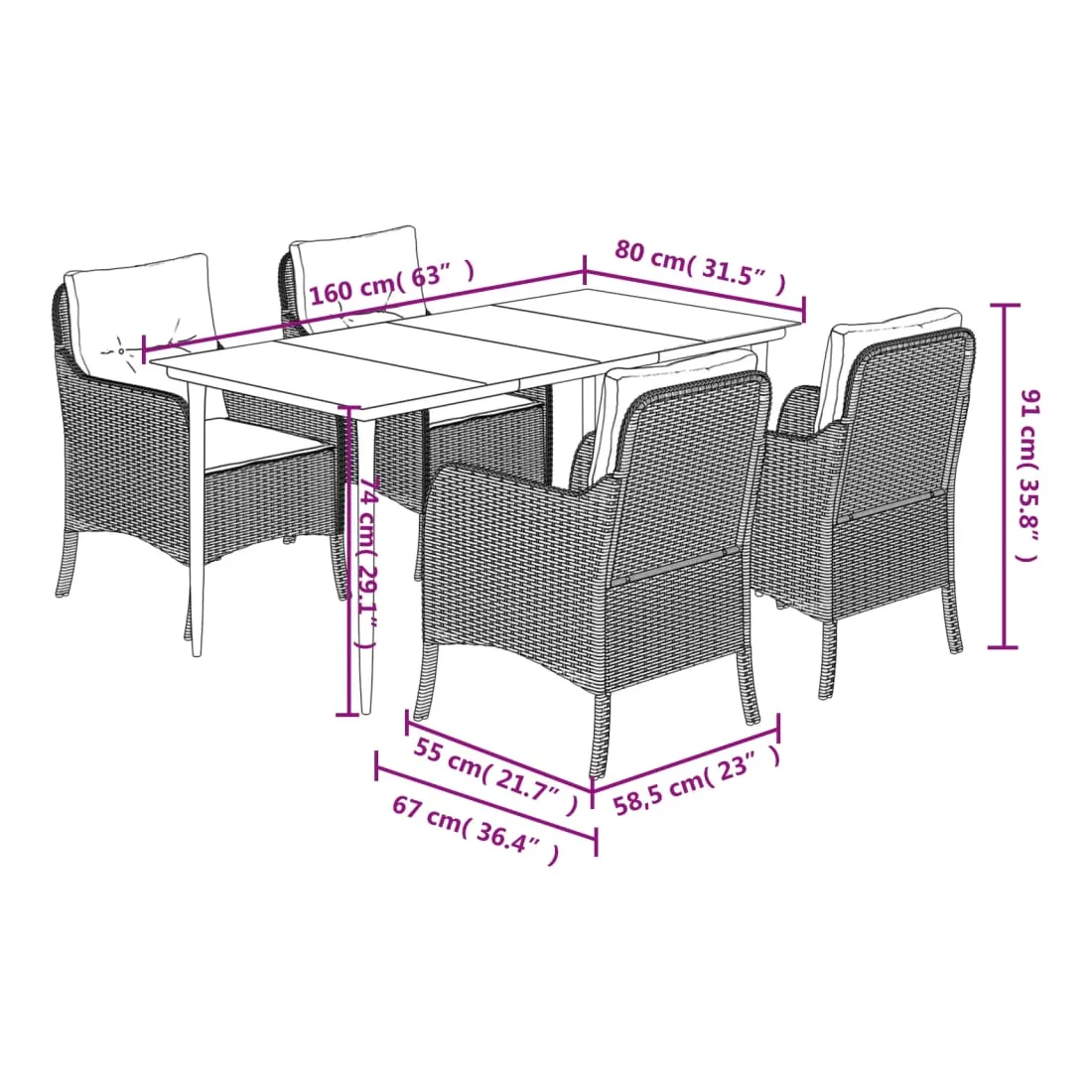 - Dimensions : 160 x 80 x 74 cm (L x l x H)