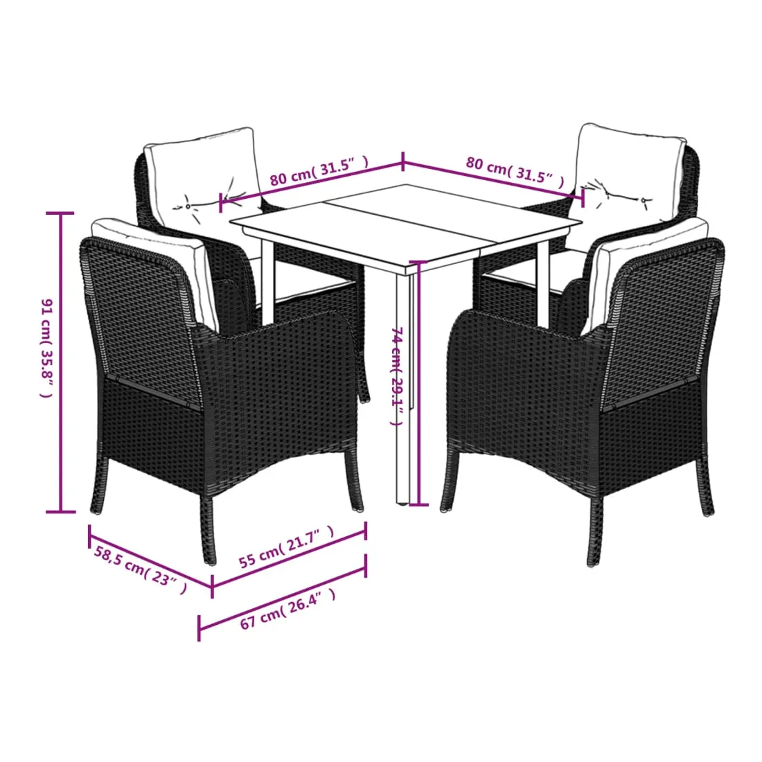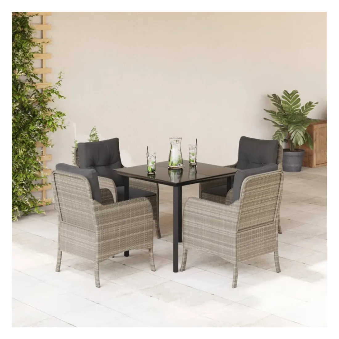 vidaXLCet ensemble de salle à manger de jardin est un excellent choix pour les repas en plein air ou pour vous détendre dans le jardin, l'arrière-cour ou le patio. Matériau durable : la résine tressée, également connue sous le nom de poly rotin, est un matériau synthétique solide et nécessitant peu d'entretien qui ressemble au rotin naturel. Il est léger, facile à nettoyer et couramment utilisé pour les meubles d'extérieur en raison de sa durabilité et de ses propriétés de résistance aux intempéries.Expérience d'assise confortable : ce mobilier d'extérieur, doté de coussins épais, offre une expérience d'assise confortable.Housse amovible et lavable : ces coussins de siège sont dotés de housses amovibles pour un lavage et un entretien faciles.Dessus en verre : le dessus de la table d'extérieur est fabriqué en verre trempé solide et durable, ce qui le rend facile à nettoyer avec un chiffon humide et ajoute une touche d'élégance à votre espace extérieur.Cadre robuste et stable : le cadre en acier enduit de poudre assure la solidité et la stabilité du meuble de jardin pour une utilisation quotidienne à l'extérieur. Bon à savoir :Pour que vos meubles d'extérieur restent beaux, nous vous recommandons de les protéger avec une housse imperméable.