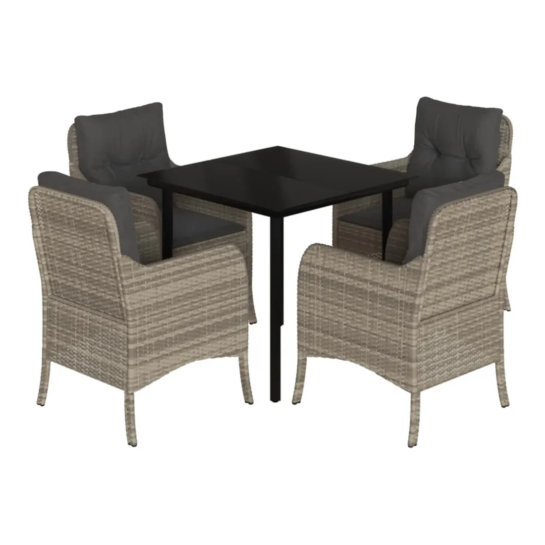 Ensemble à manger de jardin et coussins 5 pcs gris clair rotin