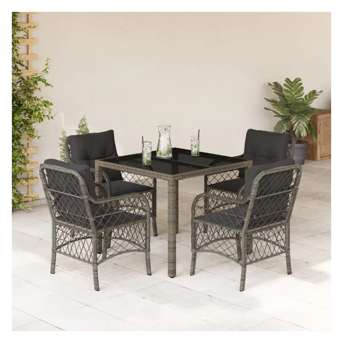 Ensemble à manger de jardin 5 pcs coussins gris résine tressée
