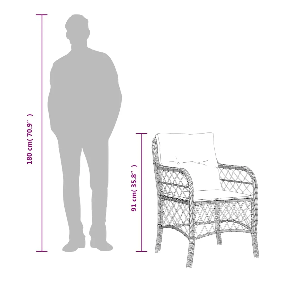 - Hauteur du siège à partir du sol (sans coussin) : 42 cm