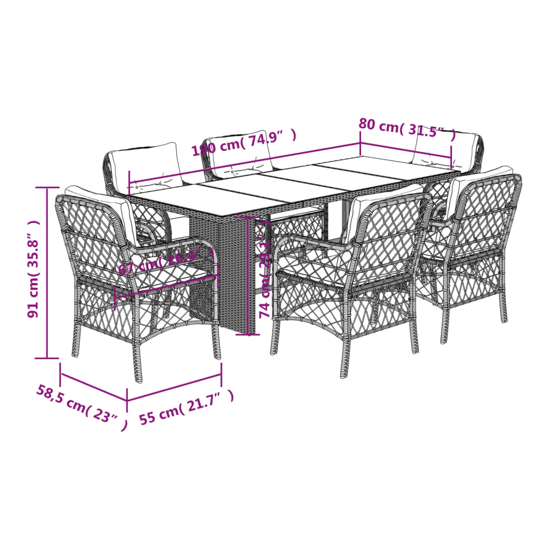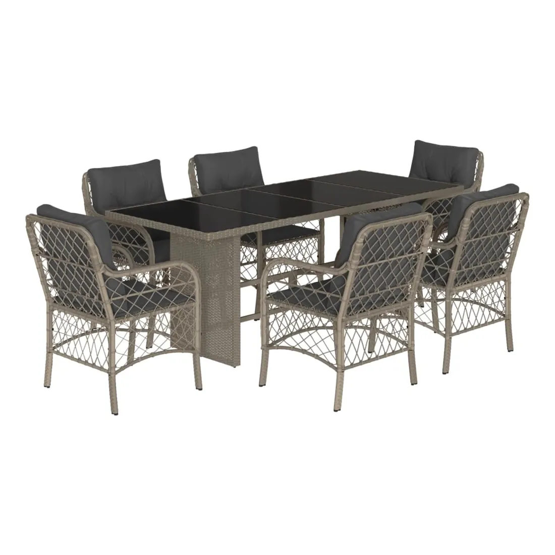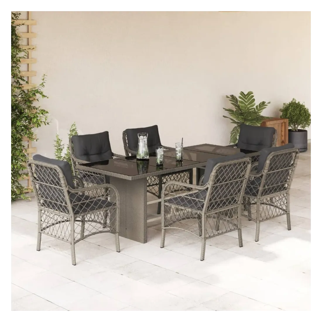 Cet ensemble de salle à manger de jardin est un excellent choix pour les repas en plein air ou pour vous détendre dans le jardin, l'arrière-cour ou le patio. Matériau durable : la résine tressée, également connue sous le nom de poly rotin, est un matériau synthétique solide et nécessitant peu d'entretien qui ressemble au rotin naturel. Il est léger, facile à nettoyer et couramment utilisé pour les meubles d'extérieur en raison de sa durabilité et de ses propriétés de résistance aux intempéries.Expérience d'assise confortable : ce mobilier d'extérieur, doté de coussins épais, offre une expérience d'assise confortable.Housse amovible et lavable : ces coussins de siège sont dotés de housses amovibles pour un lavage et un entretien faciles.Dessus en verre : le dessus de la table d'extérieur est fabriqué en verre trempé solide et durable, ce qui le rend facile à nettoyer avec un chiffon humide et ajoute une touche d'élégance à votre espace extérieur.Cadre robuste et stable : le cadre en acier enduit de poudre assure la solidité et la stabilité du meuble de jardin pour une utilisation quotidienne à l'extérieur. Bon à savoir :Pour que vos meubles d'extérieur restent beaux, nous vous recommandons de les protéger avec une housse imperméable.
