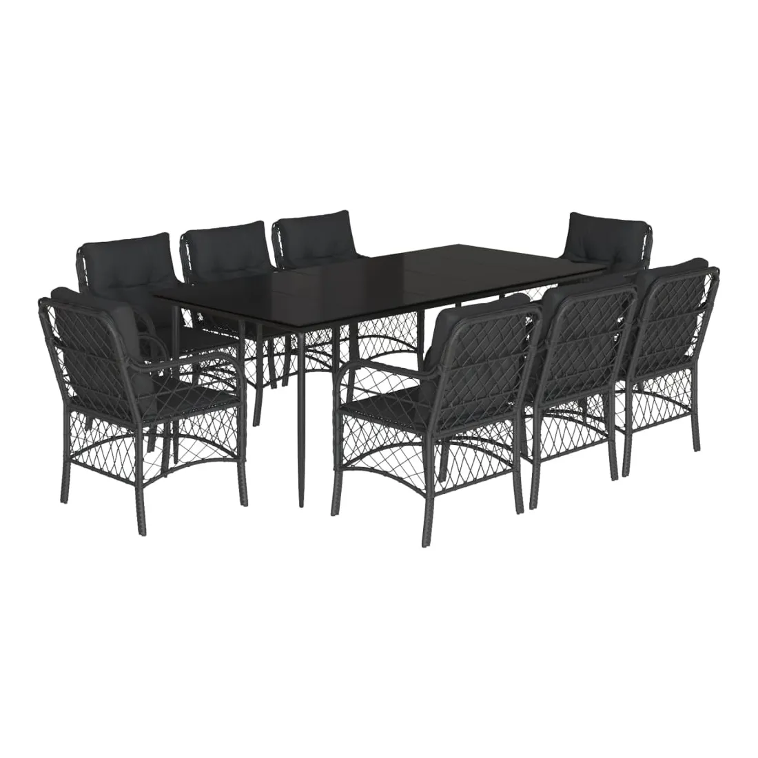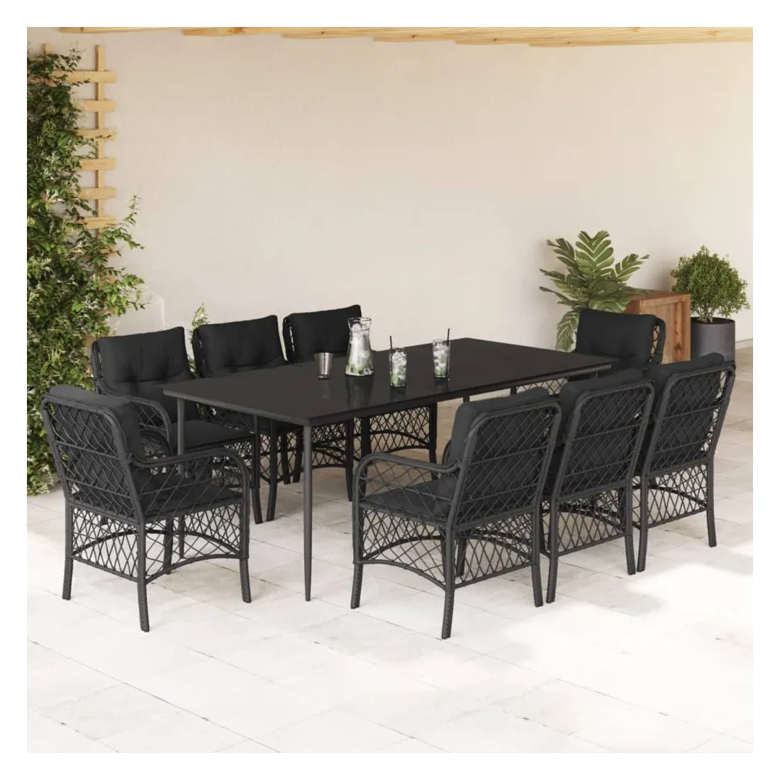 Cet ensemble de salle à manger de jardin est un excellent choix pour les repas en plein air ou pour vous détendre dans le jardin, l'arrière-cour ou le patio. Matériau durable : la résine tressée, également connue sous le nom de poly rotin, est un matériau synthétique solide et nécessitant peu d'entretien qui ressemble au rotin naturel. Il est léger, facile à nettoyer et couramment utilisé pour les meubles d'extérieur en raison de sa durabilité et de ses propriétés de résistance aux intempéries.Expérience d'assise confortable : ce mobilier d'extérieur, doté de coussins épais, offre une expérience d'assise confortable.Housse amovible et lavable : ces coussins de siège sont dotés de housses amovibles pour un lavage et un entretien faciles.Dessus en verre : le dessus de la table d'extérieur est fabriqué en verre trempé solide et durable, ce qui le rend facile à nettoyer avec un chiffon humide et ajoute une touche d'élégance à votre espace extérieur.Cadre robuste et stable : le cadre en acier enduit de poudre assure la solidité et la stabilité du meuble de jardin pour une utilisation quotidienne à l'extérieur. Bon à savoir :Pour que vos meubles d'extérieur restent beaux, nous vous recommandons de les protéger avec une housse imperméable.