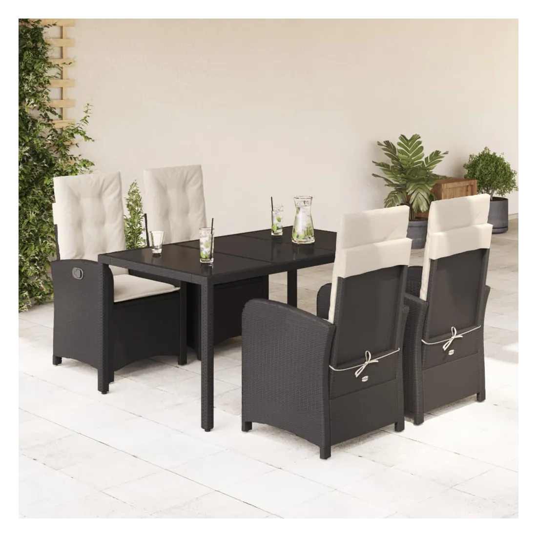 Cet ensemble de salle à manger de jardin est un excellent choix pour les repas en plein air ou pour vous détendre dans le jardin, dans l'arrière-cour ou sur la terrasse. Matériau durable : la résine tressée, également connue sous le nom de poly rotin, est un matériau synthétique solide et nécessitant peu d'entretien qui ressemble au rotin naturel. Il est léger, facile à nettoyer et couramment utilisé pour les meubles d'extérieur en raison de sa durabilité et de ses propriétés de résistance aux intempéries.Dossier réglable : ce siège de jardin est doté d'une poignée. Vous pouvez régler le dossier dans n'importe quelle position en tirant sur la poignée et le remettre rapidement dans sa position initiale.Expérience d'assise confortable : ce mobilier d'extérieur, doté de coussins épais, offre une expérience d'assise confortable.Housse amovible et lavable : ces coussins de siège sont dotés de housses amovibles pour un lavage et un entretien faciles. Les coussins de dossier ont un rabat à l'arrière pour une fixation facile aux dossiers.Dessus en verre : le dessus de la table d'extérieur est fabriqué en verre trempé solide et durable, ce qui le rend facile à nettoyer avec un chiffon humide et ajoute une touche d'élégance à votre espace extérieur. Bon à savoir :Pour que vos meubles d'extérieur restent beaux, nous vous recommandons de les protéger avec une housse imperméable.