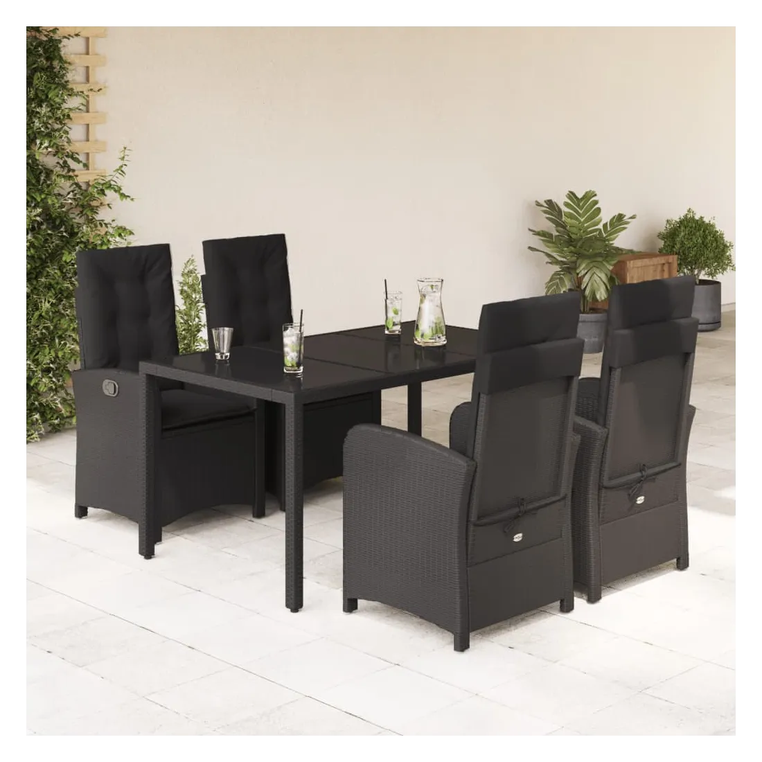 Cet ensemble de salle à manger de jardin est un excellent choix pour les repas en plein air ou pour vous détendre dans le jardin, dans l'arrière-cour ou sur la terrasse. Matériau durable : la résine tressée, également connue sous le nom de poly rotin, est un matériau synthétique solide et nécessitant peu d'entretien qui ressemble au rotin naturel. Il est léger, facile à nettoyer et couramment utilisé pour les meubles d'extérieur en raison de sa durabilité et de ses propriétés de résistance aux intempéries.Dossier réglable : ce siège de jardin est doté d'une poignée. Vous pouvez régler le dossier dans n'importe quelle position en tirant sur la poignée et le remettre rapidement dans sa position initiale.Expérience d'assise confortable : ce mobilier d'extérieur, doté de coussins épais, offre une expérience d'assise confortable.Housse amovible et lavable : ces coussins de siège sont dotés de housses amovibles pour un lavage et un entretien faciles. Les coussins de dossier ont un rabat à l'arrière pour une fixation facile aux dossiers.Dessus en verre : le dessus de la table d'extérieur est fabriqué en verre trempé solide et durable, ce qui le rend facile à nettoyer avec un chiffon humide et ajoute une touche d'élégance à votre espace extérieur. Bon à savoir :Pour que vos meubles d'extérieur restent beaux, nous vous recommandons de les protéger avec une housse imperméable.