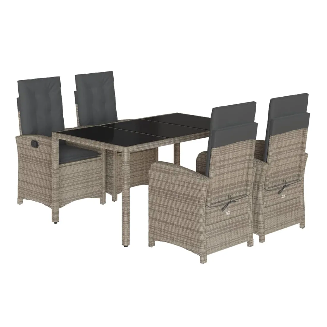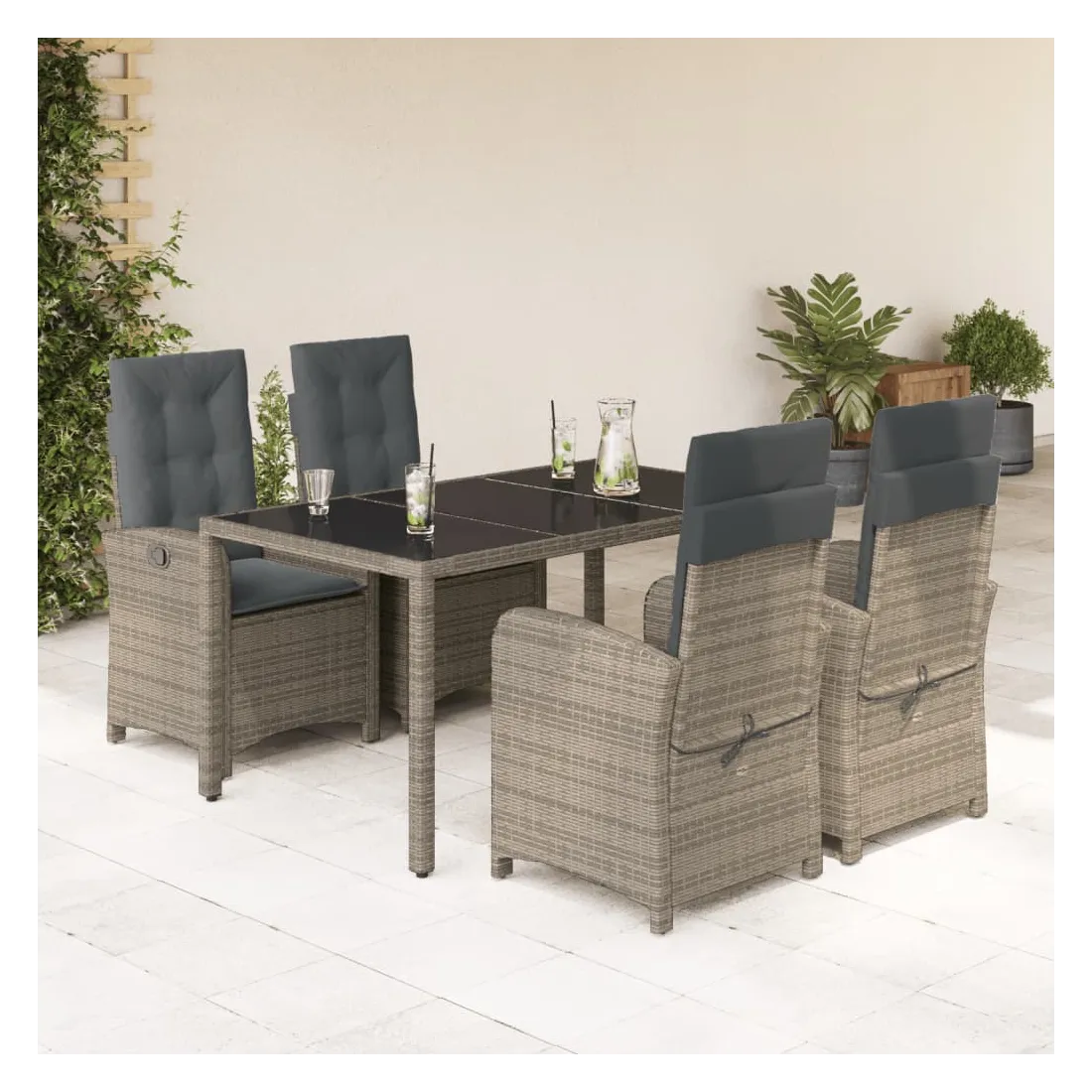 Cet ensemble de salle à manger de jardin est un excellent choix pour les repas en plein air ou pour vous détendre dans le jardin, dans l'arrière-cour ou sur la terrasse. Matériau durable : la résine tressée, également connue sous le nom de poly rotin, est un matériau synthétique solide et nécessitant peu d'entretien qui ressemble au rotin naturel. Il est léger, facile à nettoyer et couramment utilisé pour les meubles d'extérieur en raison de sa durabilité et de ses propriétés de résistance aux intempéries.Dossier réglable : ce siège de jardin est doté d'une poignée. Vous pouvez régler le dossier dans n'importe quelle position en tirant sur la poignée et le remettre rapidement dans sa position initiale.Expérience d'assise confortable : ce mobilier d'extérieur, doté de coussins épais, offre une expérience d'assise confortable.Housse amovible et lavable : ces coussins de siège sont dotés de housses amovibles pour un lavage et un entretien faciles. Les coussins de dossier ont un rabat à l'arrière pour une fixation facile aux dossiers.Dessus en verre : le dessus de la table d'extérieur est fabriqué en verre trempé solide et durable, ce qui le rend facile à nettoyer avec un chiffon humide et ajoute une touche d'élégance à votre espace extérieur. Bon à savoir :Pour que vos meubles d'extérieur restent beaux, nous vous recommandons de les protéger avec une housse imperméable.