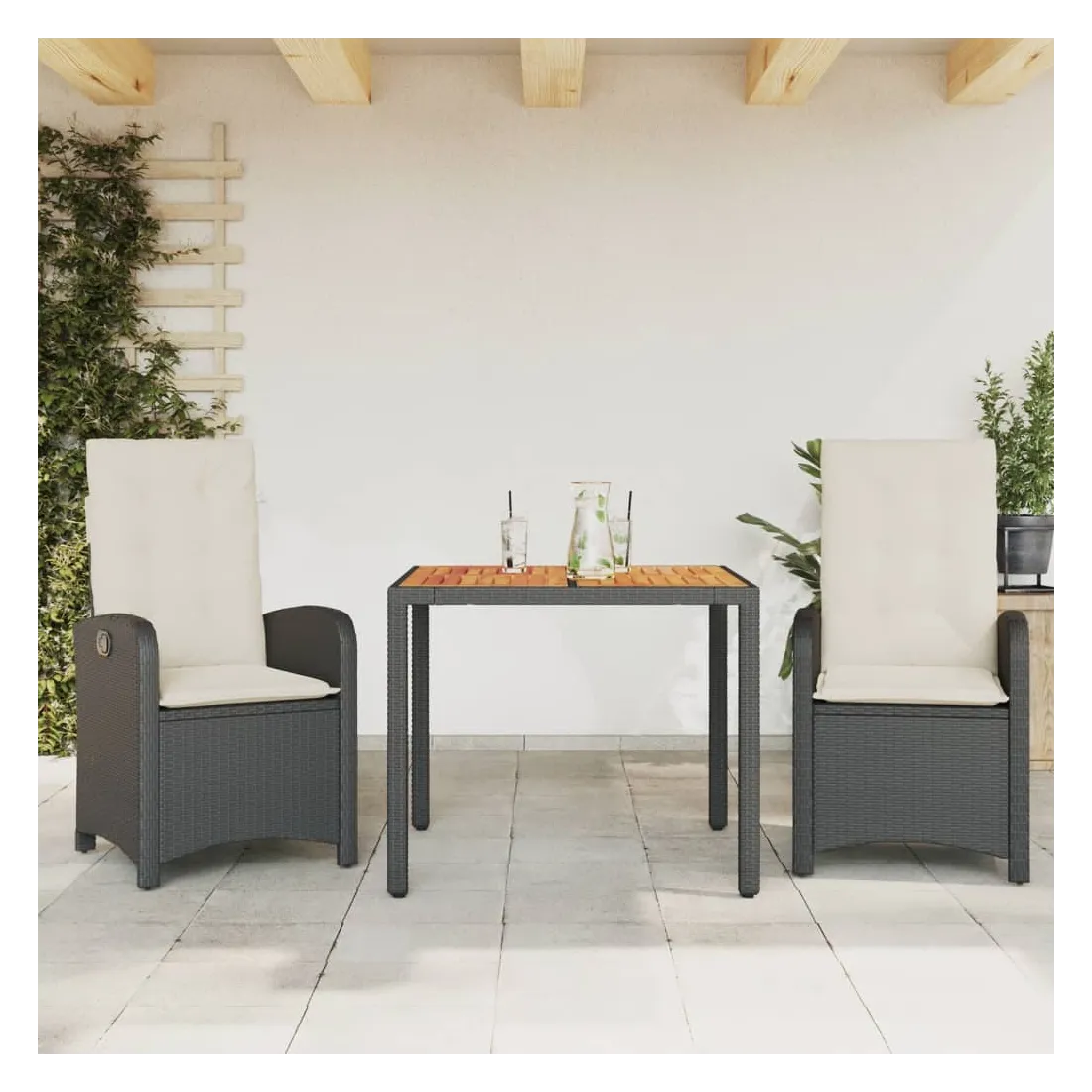 - Matériau : résine tressée, acier enduit de poudre, bois d'acacia massif avec finition à l'huile