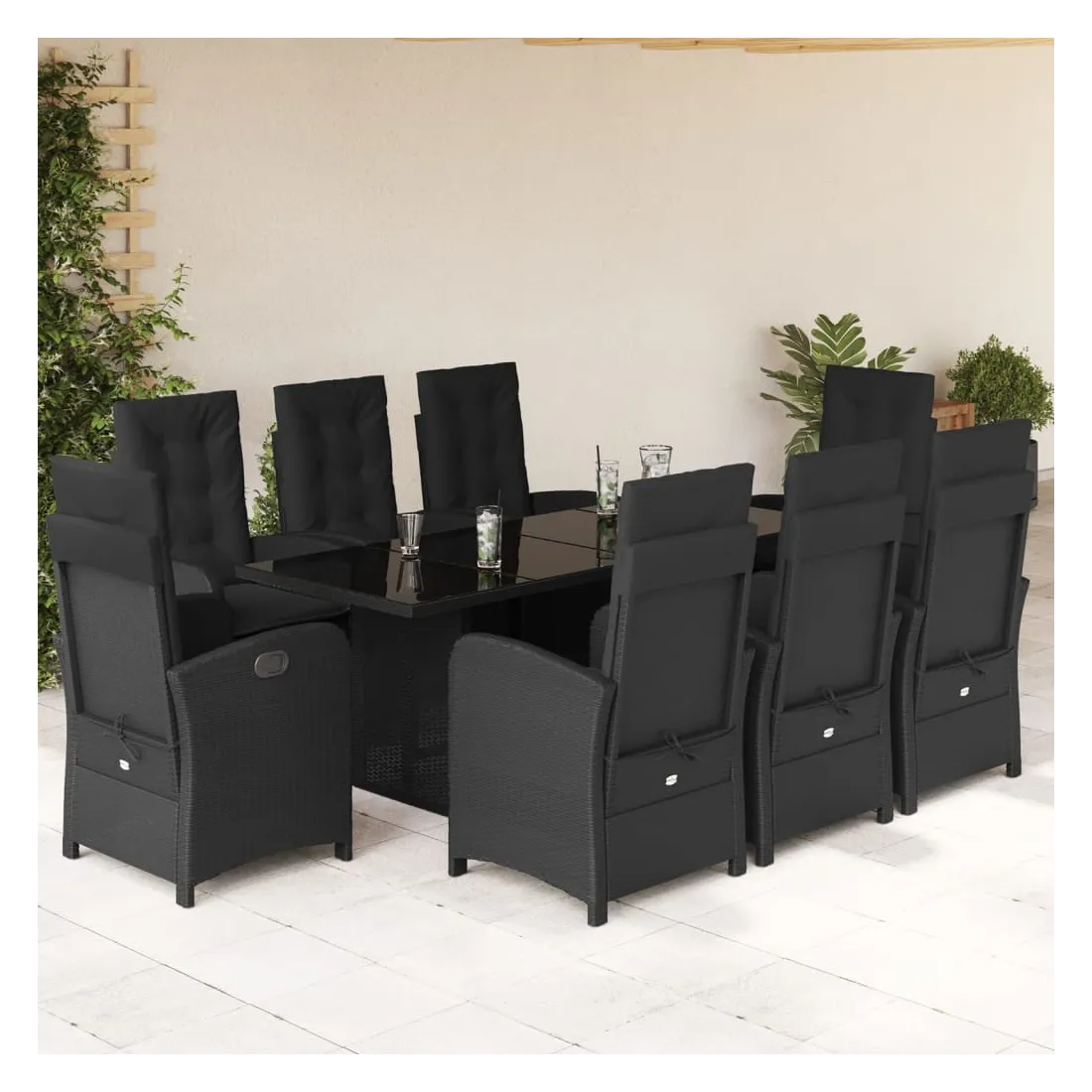 Cet ensemble de salle à manger de jardin est un excellent choix pour les repas en plein air ou pour vous détendre dans le jardin, dans l'arrière-cour ou sur la terrasse. Matériau durable : la résine tressée, également connue sous le nom de poly rotin, est un matériau synthétique solide et nécessitant peu d'entretien qui ressemble au rotin naturel. Il est léger, facile à nettoyer et couramment utilisé pour les meubles d'extérieur en raison de sa durabilité et de ses propriétés de résistance aux intempéries.Dossier réglable : ce siège de jardin est doté d'une poignée. Vous pouvez régler le dossier dans n'importe quelle position en tirant sur la poignée et le remettre rapidement dans sa position initiale.Expérience d'assise confortable : ce mobilier d'extérieur, doté de coussins épais, offre une expérience d'assise confortable.Housse amovible et lavable : ces coussins de siège sont dotés de housses amovibles pour un lavage et un entretien faciles. Les coussins de dossier ont un rabat à l'arrière pour une fixation facile aux dossiers.Dessus en verre : le dessus de la table d'extérieur est fabriqué en verre trempé solide et durable, ce qui le rend facile à nettoyer avec un chiffon humide et ajoute une touche d'élégance à votre espace extérieur. Bon à savoir :Pour que vos meubles d'extérieur restent beaux, nous vous recommandons de les protéger avec une housse imperméable.