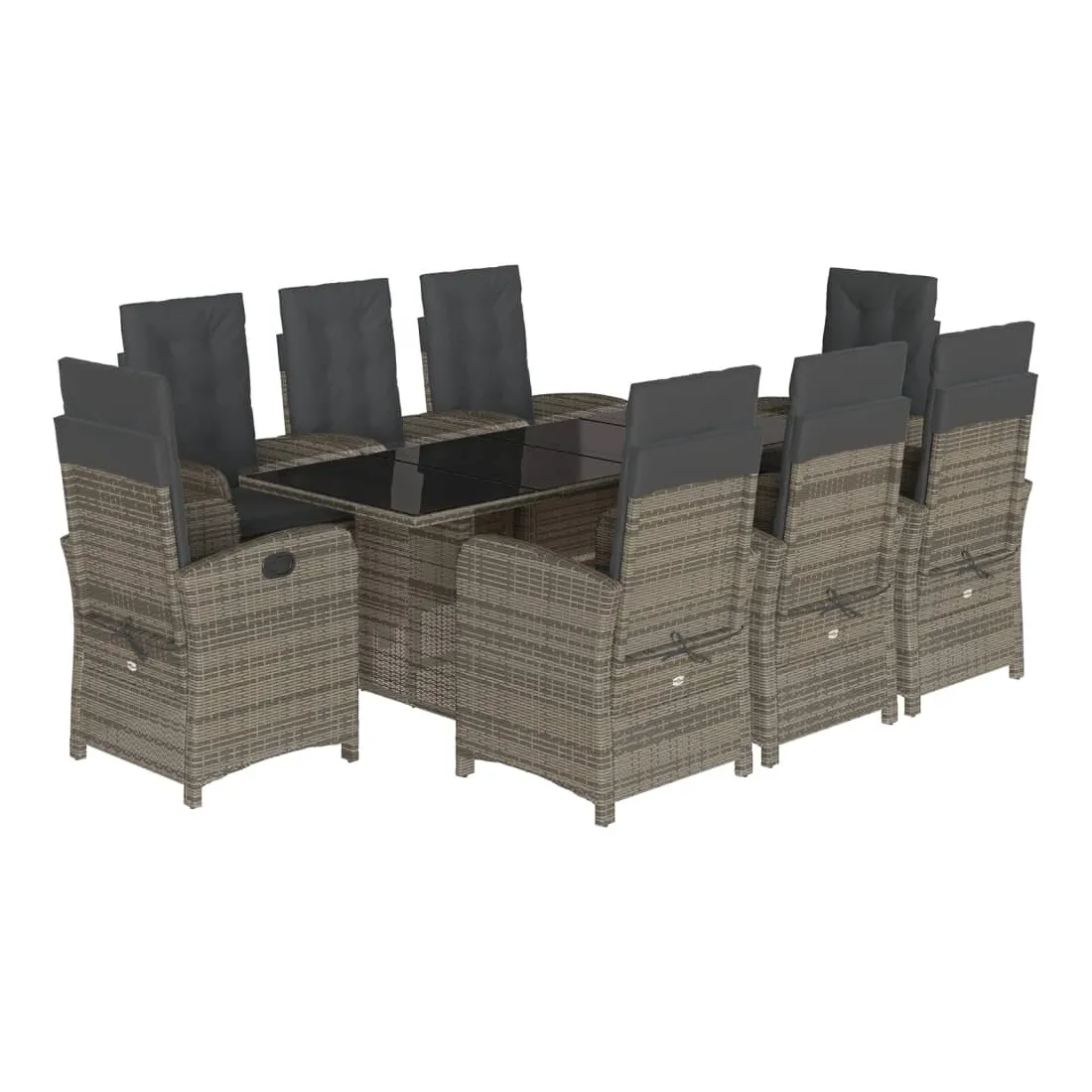 Cet ensemble de salle à manger de jardin est un excellent choix pour les repas en plein air ou pour vous détendre dans le jardin, dans l'arrière-cour ou sur la terrasse. Matériau durable : la résine tressée, également connue sous le nom de poly rotin, est un matériau synthétique solide et nécessitant peu d'entretien qui ressemble au rotin naturel. Il est léger, facile à nettoyer et couramment utilisé pour les meubles d'extérieur en raison de sa durabilité et de ses propriétés de résistance aux intempéries.Dossier réglable : ce siège de jardin est doté d'une poignée. Vous pouvez régler le dossier dans n'importe quelle position en tirant sur la poignée et le remettre rapidement dans sa position initiale.Expérience d'assise confortable : ce mobilier d'extérieur, doté de coussins épais, offre une expérience d'assise confortable.Housse amovible et lavable : ces coussins de siège sont dotés de housses amovibles pour un lavage et un entretien faciles. Les coussins de dossier ont un rabat à l'arrière pour une fixation facile aux dossiers.Dessus en verre : le dessus de la table d'extérieur est fabriqué en verre trempé solide et durable, ce qui le rend facile à nettoyer avec un chiffon humide et ajoute une touche d'élégance à votre espace extérieur. Bon à savoir :Pour que vos meubles d'extérieur restent beaux, nous vous recommandons de les protéger avec une housse imperméable.