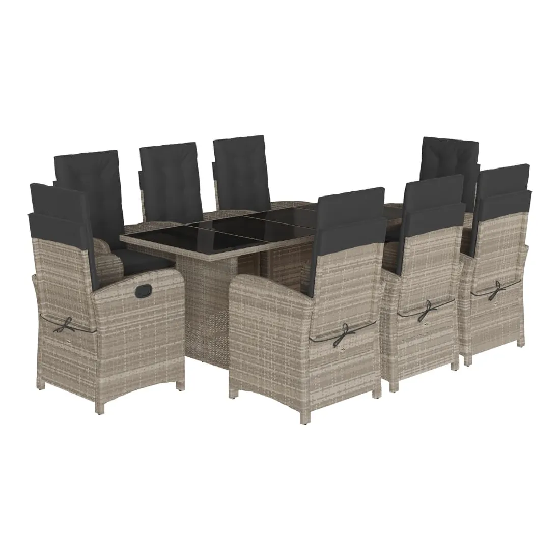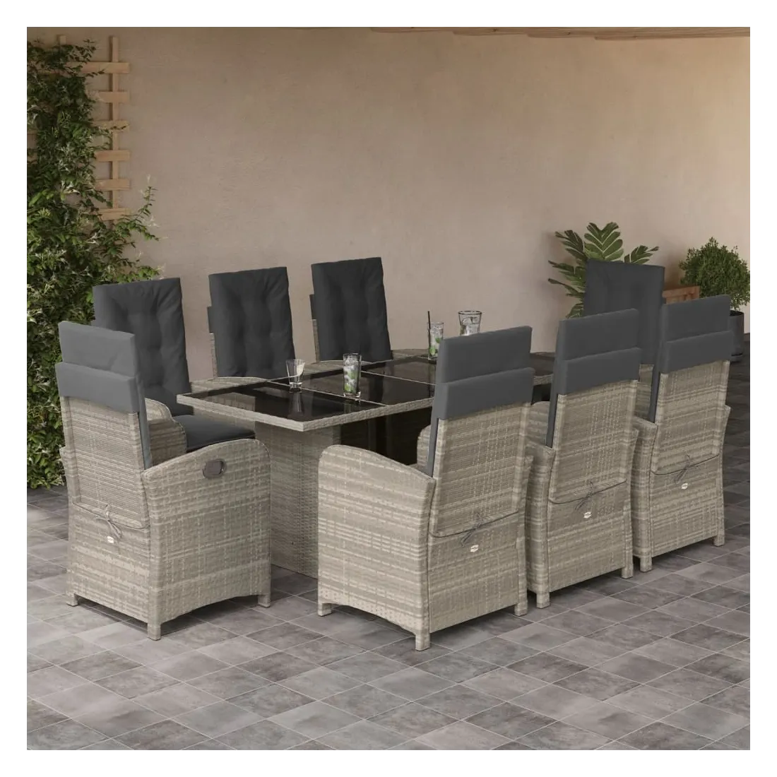 Cet ensemble de salle à manger de jardin est un excellent choix pour les repas en plein air ou pour vous détendre dans le jardin, dans l'arrière-cour ou sur la terrasse. Matériau durable : la résine tressée, également connue sous le nom de poly rotin, est un matériau synthétique solide et nécessitant peu d'entretien qui ressemble au rotin naturel. Il est léger, facile à nettoyer et couramment utilisé pour les meubles d'extérieur en raison de sa durabilité et de ses propriétés de résistance aux intempéries.Dossier réglable : ce siège de jardin est doté d'une poignée. Vous pouvez régler le dossier dans n'importe quelle position en tirant sur la poignée et le remettre rapidement dans sa position initiale.Expérience d'assise confortable : ce mobilier d'extérieur, doté de coussins épais, offre une expérience d'assise confortable.Housse amovible et lavable : ces coussins de siège sont dotés de housses amovibles pour un lavage et un entretien faciles. Les coussins de dossier ont un rabat à l'arrière pour une fixation facile aux dossiers.Dessus en verre : le dessus de la table d'extérieur est fabriqué en verre trempé solide et durable, ce qui le rend facile à nettoyer avec un chiffon humide et ajoute une touche d'élégance à votre espace extérieur. Bon à savoir :Pour que vos meubles d'extérieur restent beaux, nous vous recommandons de les protéger avec une housse imperméable.