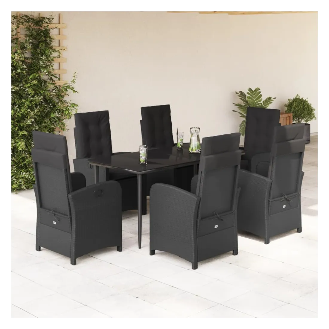 Cet ensemble de salle à manger de jardin est un excellent choix pour les repas en plein air ou pour vous détendre dans le jardin, dans l'arrière-cour ou sur la terrasse. Matériau durable : la résine tressée, également connue sous le nom de poly rotin, est un matériau synthétique solide et nécessitant peu d'entretien qui ressemble au rotin naturel. Il est léger, facile à nettoyer et couramment utilisé pour les meubles d'extérieur en raison de sa durabilité et de ses propriétés de résistance aux intempéries.Dossier réglable : ce siège de jardin est doté d'une poignée. Vous pouvez régler le dossier dans n'importe quelle position en tirant sur la poignée et le remettre rapidement dans sa position initiale.Expérience d'assise confortable : ce mobilier d'extérieur, doté de coussins épais, offre une expérience d'assise confortable.Housse amovible et lavable : ces coussins de siège sont dotés de housses amovibles pour un lavage et un entretien faciles. Les coussins de dossier ont un rabat à l'arrière pour une fixation facile aux dossiers.Dessus en verre : le dessus de la table d'extérieur est fabriqué en verre trempé solide et durable, ce qui le rend facile à nettoyer avec un chiffon humide et ajoute une touche d'élégance à votre espace extérieur. Bon à savoir :Pour que vos meubles d'extérieur restent beaux, nous vous recommandons de les protéger avec une housse imperméable.