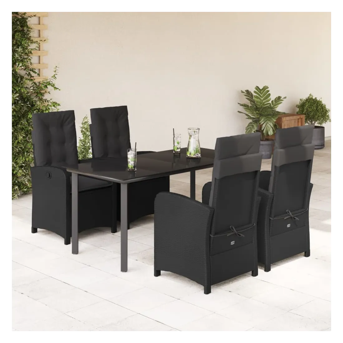 Cet ensemble de salle à manger de jardin est un excellent choix pour les repas en plein air ou pour vous détendre dans le jardin, dans l'arrière-cour ou sur la terrasse. Matériau durable : la résine tressée, également connue sous le nom de poly rotin, est un matériau synthétique solide et nécessitant peu d'entretien qui ressemble au rotin naturel. Il est léger, facile à nettoyer et couramment utilisé pour les meubles d'extérieur en raison de sa durabilité et de ses propriétés de résistance aux intempéries.Dossier réglable : ce siège de jardin est doté d'une poignée. Vous pouvez régler le dossier dans n'importe quelle position en tirant sur la poignée et le remettre rapidement dans sa position initiale.Expérience d'assise confortable : ce mobilier d'extérieur, doté de coussins épais, offre une expérience d'assise confortable.Housse amovible et lavable : ces coussins de siège sont dotés de housses amovibles pour un lavage et un entretien faciles. Les coussins de dossier ont un rabat à l'arrière pour une fixation facile aux dossiers.Dessus en verre : le dessus de la table d'extérieur est fabriqué en verre trempé solide et durable, ce qui le rend facile à nettoyer avec un chiffon humide et ajoute une touche d'élégance à votre espace extérieur. Bon à savoir :Pour que vos meubles d'extérieur restent beaux, nous vous recommandons de les protéger avec une housse imperméable.