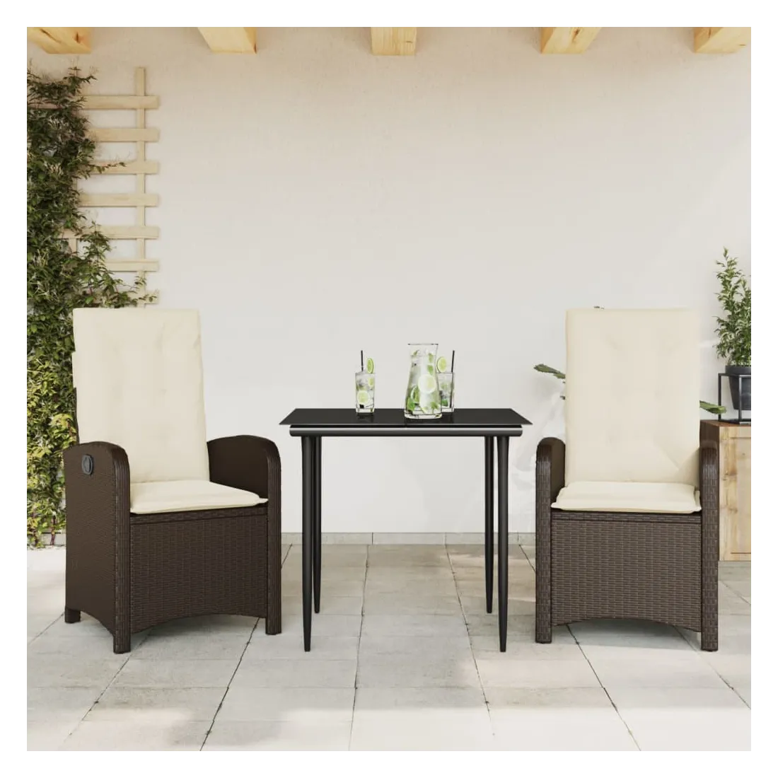 Cet ensemble de salle à manger de jardin est un excellent choix pour les repas en plein air ou pour vous détendre dans le jardin, dans l'arrière-cour ou sur la terrasse. Matériau durable : la résine tressée, également connue sous le nom de poly rotin, est un matériau synthétique solide et nécessitant peu d'entretien qui ressemble au rotin naturel. Il est léger, facile à nettoyer et couramment utilisé pour les meubles d'extérieur en raison de sa durabilité et de ses propriétés de résistance aux intempéries.Dossier réglable : ce siège de jardin est doté d'une poignée. Vous pouvez régler le dossier dans n'importe quelle position en tirant sur la poignée et le remettre rapidement dans sa position initiale.Expérience d'assise confortable : ce mobilier d'extérieur, doté de coussins épais, offre une expérience d'assise confortable.Housse amovible et lavable : ces coussins de siège sont dotés de housses amovibles pour un lavage et un entretien faciles. Les coussins de dossier ont un rabat à l'arrière pour une fixation facile aux dossiers.Dessus en verre : le dessus de la table d'extérieur est fabriqué en verre trempé solide et durable, ce qui le rend facile à nettoyer avec un chiffon humide et ajoute une touche d'élégance à votre espace extérieur. Bon à savoir :Pour que vos meubles d'extérieur restent beaux, nous vous recommandons de les protéger avec une housse imperméable.