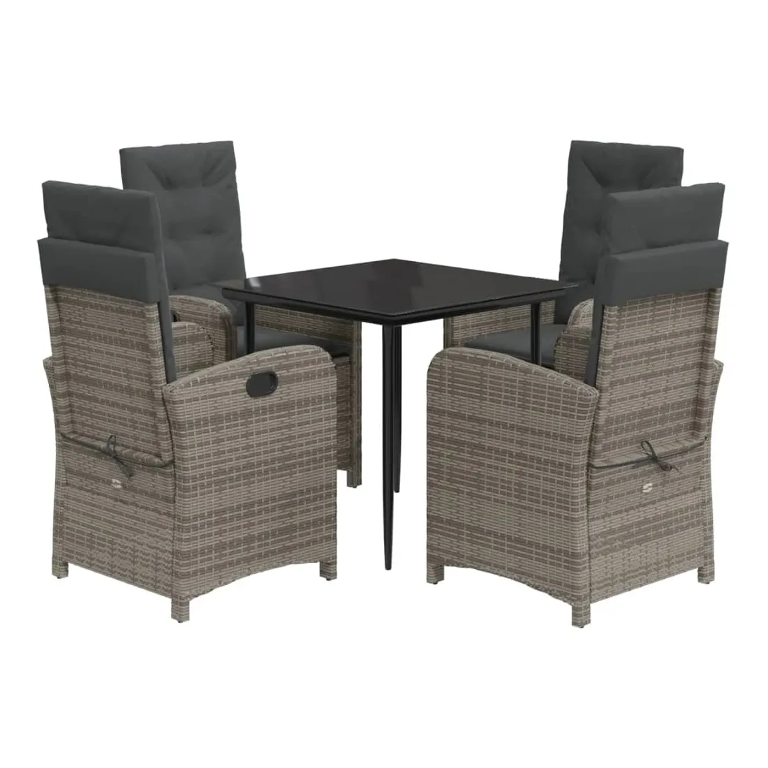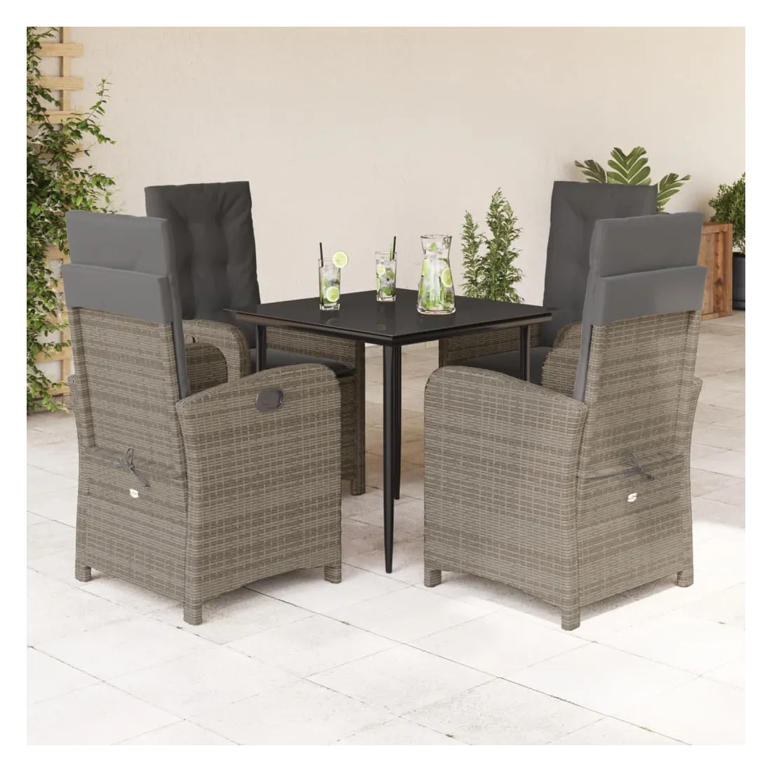 Cet ensemble de salle à manger de jardin est un excellent choix pour les repas en plein air ou pour vous détendre dans le jardin, dans l'arrière-cour ou sur la terrasse. Matériau durable : la résine tressée, également connue sous le nom de poly rotin, est un matériau synthétique solide et nécessitant peu d'entretien qui ressemble au rotin naturel. Il est léger, facile à nettoyer et couramment utilisé pour les meubles d'extérieur en raison de sa durabilité et de ses propriétés de résistance aux intempéries.Dossier réglable : ce siège de jardin est doté d'une poignée. Vous pouvez régler le dossier dans n'importe quelle position en tirant sur la poignée et le remettre rapidement dans sa position initiale.Expérience d'assise confortable : ce mobilier d'extérieur, doté de coussins épais, offre une expérience d'assise confortable.Housse amovible et lavable : ces coussins de siège sont dotés de housses amovibles pour un lavage et un entretien faciles. Les coussins de dossier ont un rabat à l'arrière pour une fixation facile aux dossiers.Dessus en verre : le dessus de la table d'extérieur est fabriqué en verre trempé solide et durable, ce qui le rend facile à nettoyer avec un chiffon humide et ajoute une touche d'élégance à votre espace extérieur. Bon à savoir :Pour que vos meubles d'extérieur restent beaux, nous vous recommandons de les protéger avec une housse imperméable.