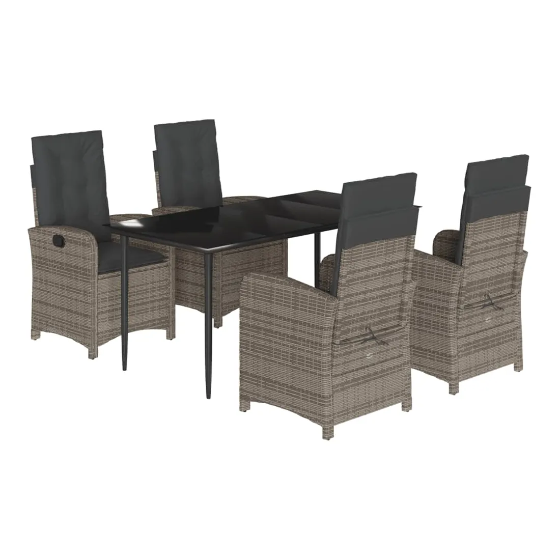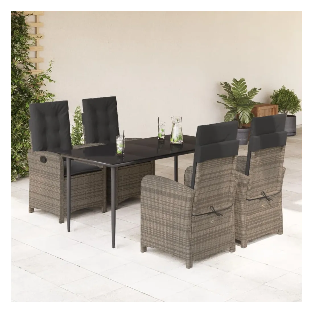 Cet ensemble de salle à manger de jardin est un excellent choix pour les repas en plein air ou pour vous détendre dans le jardin, dans l'arrière-cour ou sur la terrasse. Matériau durable : la résine tressée, également connue sous le nom de poly rotin, est un matériau synthétique solide et nécessitant peu d'entretien qui ressemble au rotin naturel. Il est léger, facile à nettoyer et couramment utilisé pour les meubles d'extérieur en raison de sa durabilité et de ses propriétés de résistance aux intempéries.Dossier réglable : ce siège de jardin est doté d'une poignée. Vous pouvez régler le dossier dans n'importe quelle position en tirant sur la poignée et le remettre rapidement dans sa position initiale.Expérience d'assise confortable : ce mobilier d'extérieur, doté de coussins épais, offre une expérience d'assise confortable.Housse amovible et lavable : ces coussins de siège sont dotés de housses amovibles pour un lavage et un entretien faciles. Les coussins de dossier ont un rabat à l'arrière pour une fixation facile aux dossiers.Dessus en verre : le dessus de la table d'extérieur est fabriqué en verre trempé solide et durable, ce qui le rend facile à nettoyer avec un chiffon humide et ajoute une touche d'élégance à votre espace extérieur. Bon à savoir :Pour que vos meubles d'extérieur restent beaux, nous vous recommandons de les protéger avec une housse imperméable.