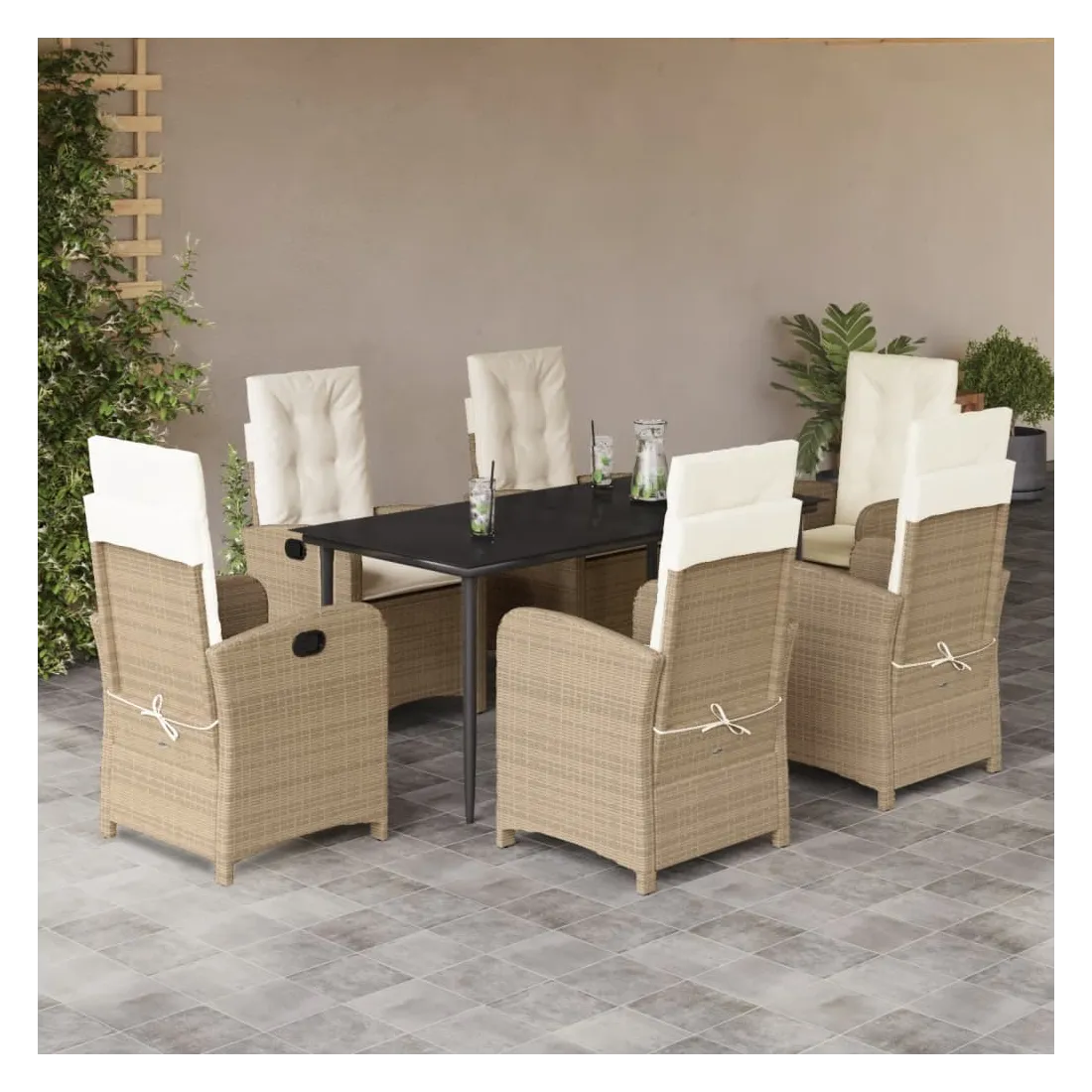 Cet ensemble de salle à manger de jardin est un excellent choix pour les repas en plein air ou pour vous détendre dans le jardin, dans l'arrière-cour ou sur la terrasse. Matériau durable : la résine tressée, également connue sous le nom de poly rotin, est un matériau synthétique solide et nécessitant peu d'entretien qui ressemble au rotin naturel. Il est léger, facile à nettoyer et couramment utilisé pour les meubles d'extérieur en raison de sa durabilité et de ses propriétés de résistance aux intempéries.Dossier réglable : ce siège de jardin est doté d'une poignée. Vous pouvez régler le dossier dans n'importe quelle position en tirant sur la poignée et le remettre rapidement dans sa position initiale.Expérience d'assise confortable : ce mobilier d'extérieur, doté de coussins épais, offre une expérience d'assise confortable.Housse amovible et lavable : ces coussins de siège sont dotés de housses amovibles pour un lavage et un entretien faciles. Les coussins de dossier ont un rabat à l'arrière pour une fixation facile aux dossiers.Dessus en verre : le dessus de la table d'extérieur est fabriqué en verre trempé solide et durable, ce qui le rend facile à nettoyer avec un chiffon humide et ajoute une touche d'élégance à votre espace extérieur. Bon à savoir :Pour que vos meubles d'extérieur restent beaux, nous vous recommandons de les protéger avec une housse imperméable.