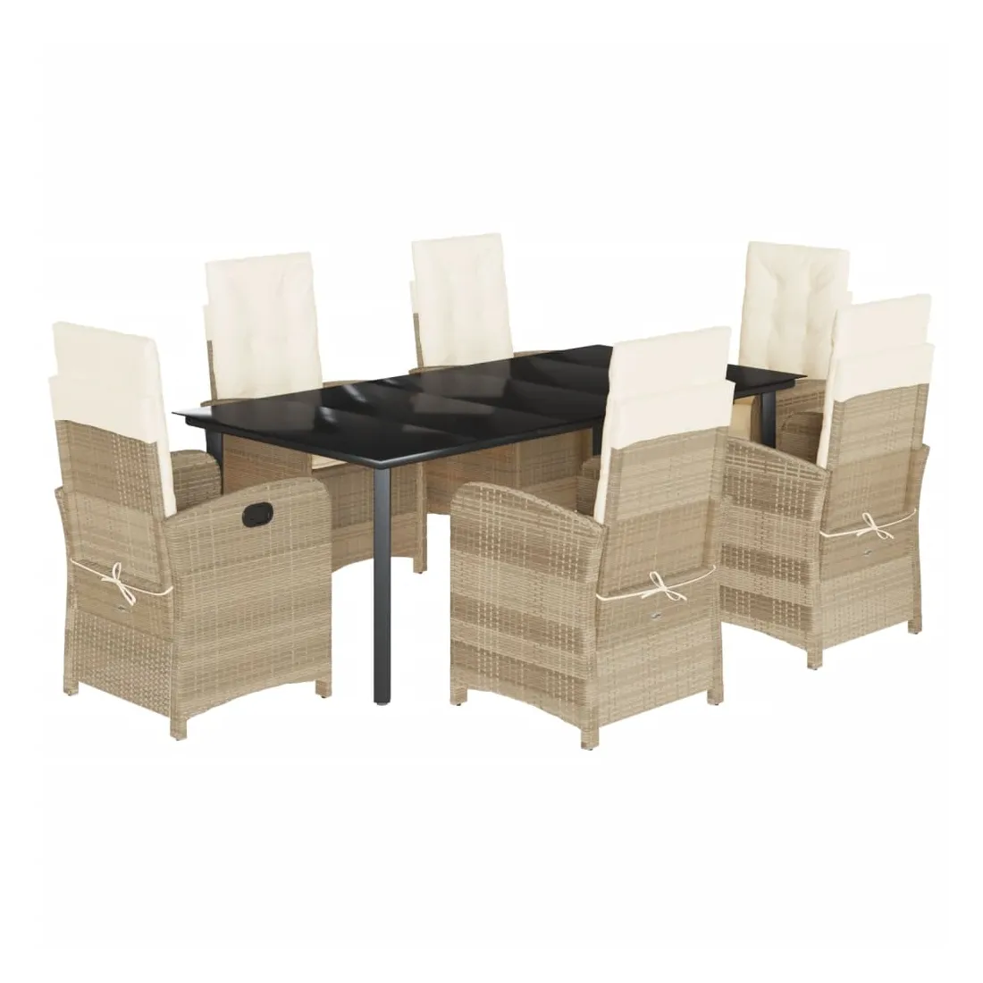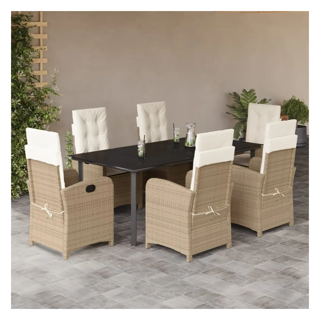 Cet ensemble de salle à manger de jardin est un excellent choix pour les repas en plein air ou pour vous détendre dans le jardin, dans l'arrière-cour ou sur la terrasse. Matériau durable : la résine tressée, également connue sous le nom de poly rotin, est un matériau synthétique solide et nécessitant peu d'entretien qui ressemble au rotin naturel. Il est léger, facile à nettoyer et couramment utilisé pour les meubles d'extérieur en raison de sa durabilité et de ses propriétés de résistance aux intempéries.Dossier réglable : ce siège de jardin est doté d'une poignée. Vous pouvez régler le dossier dans n'importe quelle position en tirant sur la poignée et le remettre rapidement dans sa position initiale.Expérience d'assise confortable : ce mobilier d'extérieur, doté de coussins épais, offre une expérience d'assise confortable.Housse amovible et lavable : ces coussins de siège sont dotés de housses amovibles pour un lavage et un entretien faciles. Les coussins de dossier ont un rabat à l'arrière pour une fixation facile aux dossiers.Dessus en verre : le dessus de la table d'extérieur est fabriqué en verre trempé solide et durable, ce qui le rend facile à nettoyer avec un chiffon humide et ajoute une touche d'élégance à votre espace extérieur. Bon à savoir :Pour que vos meubles d'extérieur restent beaux, nous vous recommandons de les protéger avec une housse imperméable.