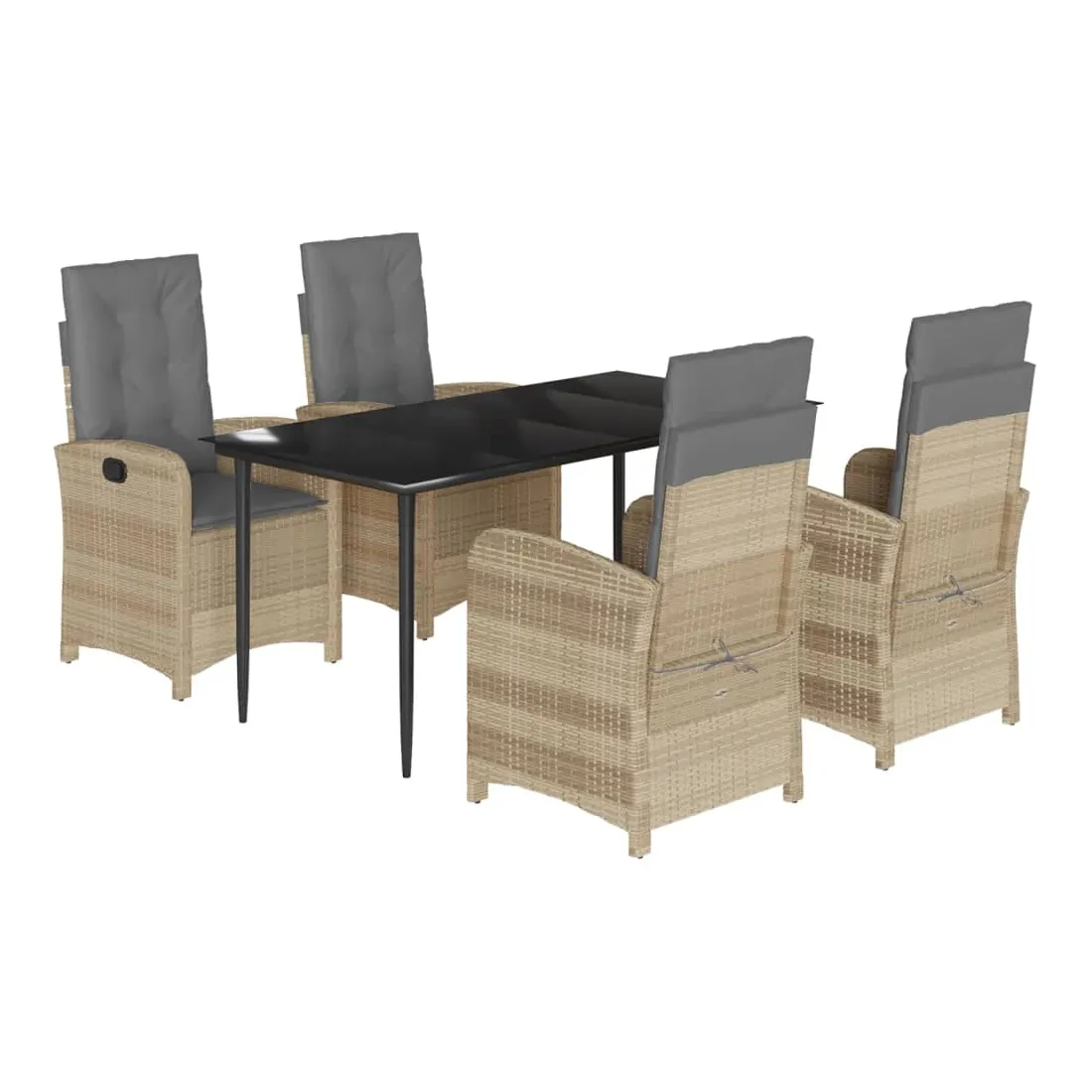 Cet ensemble de salle à manger de jardin est un excellent choix pour les repas en plein air ou pour vous détendre dans le jardin, dans l'arrière-cour ou sur la terrasse. Matériau durable : la résine tressée, également connue sous le nom de poly rotin, est un matériau synthétique solide et nécessitant peu d'entretien qui ressemble au rotin naturel. Il est léger, facile à nettoyer et couramment utilisé pour les meubles d'extérieur en raison de sa durabilité et de ses propriétés de résistance aux intempéries.Dossier réglable : ce siège de jardin est doté d'une poignée. Vous pouvez régler le dossier dans n'importe quelle position en tirant sur la poignée et le remettre rapidement dans sa position initiale.Expérience d'assise confortable : ce mobilier d'extérieur, doté de coussins épais, offre une expérience d'assise confortable.Housse amovible et lavable : ces coussins de siège sont dotés de housses amovibles pour un lavage et un entretien faciles. Les coussins de dossier ont un rabat à l'arrière pour une fixation facile aux dossiers.Dessus en verre : le dessus de la table d'extérieur est fabriqué en verre trempé solide et durable, ce qui le rend facile à nettoyer avec un chiffon humide et ajoute une touche d'élégance à votre espace extérieur. Bon à savoir :Pour que vos meubles d'extérieur restent beaux, nous vous recommandons de les protéger avec une housse imperméable.