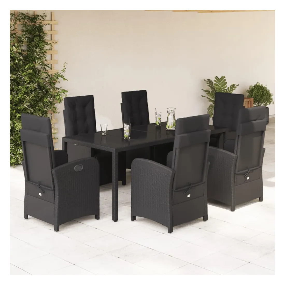 Savourez une tasse de café ou discutez avec votre famille et vos amis dans le jardin, l'arrière-cour ou sur le balcon avec cet ensemble de salle à manger de jardin confortable ! Matériau durable : la résine tressée, également connue sous le nom de poly rotin, est un matériau synthétique solide et nécessitant peu d'entretien qui ressemble au rotin naturel. Il est léger, facile à nettoyer et couramment utilisé pour les meubles d'extérieur en raison de sa durabilité et de ses propriétés de résistance aux intempéries.Dossier et repose-pied réglables : ce siège de jardin est doté d'une poignée. Vous pouvez régler le dossier et le repose-pied dans n'importe quelle position en tirant sur la poignée, et les remettre rapidement dans leur position initiale.Expérience d'assise confortable : ce mobilier d'extérieur, doté de coussins épais, offre une expérience d'assise confortable.Housse amovible et lavable : ces coussins de siège sont dotés de housses amovibles pour un lavage et un entretien faciles. Les coussins de dossier ont un rabat à l'arrière pour une fixation facile aux dossiers.Dessus en verre : le dessus de la table d'extérieur est fabriqué en verre trempé solide et durable, ce qui le rend facile à nettoyer avec un chiffon humide et ajoute une touche d'élégance à votre espace extérieur. Bon à savoir :Pour que vos meubles d'extérieur restent beaux, nous vous recommandons de les protéger avec une housse imperméable.