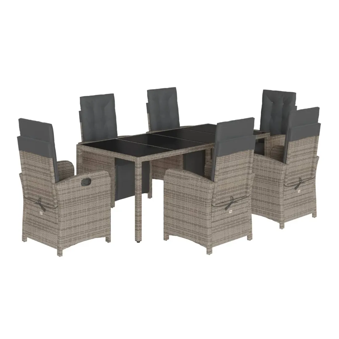 Savourez une tasse de café ou discutez avec votre famille et vos amis dans le jardin, l'arrière-cour ou sur le balcon avec cet ensemble de salle à manger de jardin confortable ! Matériau durable : la résine tressée, également connue sous le nom de poly rotin, est un matériau synthétique solide et nécessitant peu d'entretien qui ressemble au rotin naturel. Il est léger, facile à nettoyer et couramment utilisé pour les meubles d'extérieur en raison de sa durabilité et de ses propriétés de résistance aux intempéries.Dossier et repose-pied réglables : ce siège de jardin est doté d'une poignée. Vous pouvez régler le dossier et le repose-pied dans n'importe quelle position en tirant sur la poignée, et les remettre rapidement dans leur position initiale.Expérience d'assise confortable : ce mobilier d'extérieur, doté de coussins épais, offre une expérience d'assise confortable.Housse amovible et lavable : ces coussins de siège sont dotés de housses amovibles pour un lavage et un entretien faciles. Les coussins de dossier ont un rabat à l'arrière pour une fixation facile aux dossiers.Dessus en verre : le dessus de la table d'extérieur est fabriqué en verre trempé solide et durable, ce qui le rend facile à nettoyer avec un chiffon humide et ajoute une touche d'élégance à votre espace extérieur. Bon à savoir :Pour que vos meubles d'extérieur restent beaux, nous vous recommandons de les protéger avec une housse imperméable.