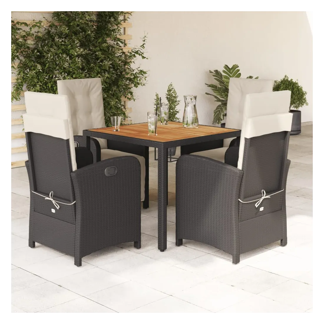 Savourez une tasse de café ou discutez avec votre famille et vos amis dans le jardin, l'arrière-cour ou sur le balcon avec cet ensemble de salle à manger de jardin confortable ! Matériau durable : la résine tressée, également connue sous le nom de poly rotin, est un matériau synthétique solide et nécessitant peu d'entretien qui ressemble au rotin naturel. Il est léger, facile à nettoyer et couramment utilisé pour les meubles d'extérieur en raison de sa durabilité et de ses propriétés de résistance aux intempéries.Dossier et repose-pied réglables : ce siège de jardin est doté d'une poignée. Vous pouvez régler le dossier et le repose-pied dans n'importe quelle position en tirant sur la poignée, et les remettre rapidement dans leur position initiale.Expérience d'assise confortable : ce mobilier d'extérieur, doté de coussins épais, offre une expérience d'assise confortable.Housse amovible et lavable : ces coussins de siège sont dotés de housses amovibles pour un lavage et un entretien faciles. Les coussins de dossier ont un rabat à l'arrière pour une fixation facile aux dossiers. Dessus stable et facile à nettoyer : cette table de jardin a un dessus en bois d'acacia robuste, durable et facile à nettoyer avec un chiffon humide. Bon à savoir :Pour que vos meubles d'extérieur restent beaux, nous vous recommandons de les protéger avec une housse imperméable.